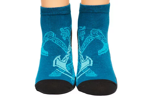 Assassins Creed Valhalla skarpetki - Wybierz się na spacery po średniowiecznych lasach Wielkiej Brytanii w nowych skarpetkach Assassins Creed Valhalla, podbijesz Wielką Brytanię przed monitorem w domu, jednak dobre skarpety się przydadzą.