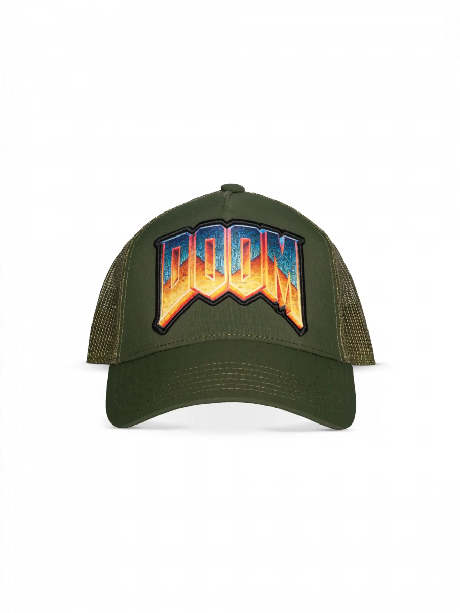 Przygotuj się na demony i letnie upały. Ta oliwkowo-zielona czapka typu trucker z masywnym logo DOOM to idealny dodatek dla każdego Slayera.