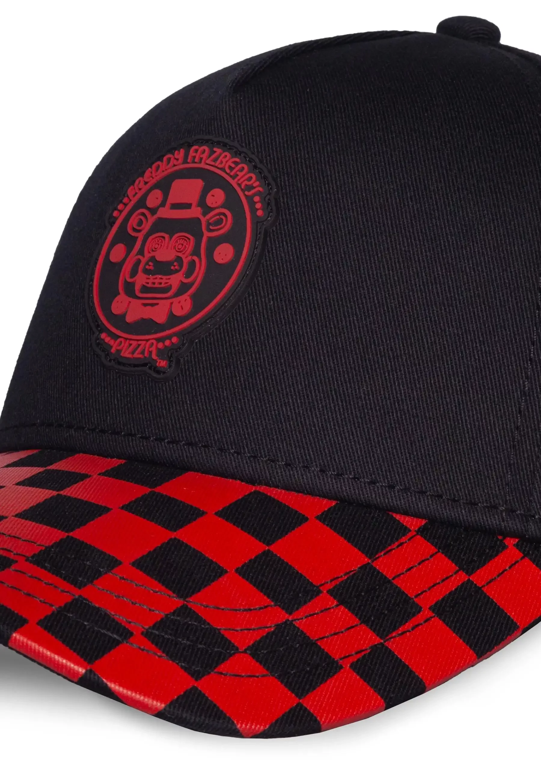 Stylowa, czarna czapka z daszkiem inspirowana serią horrorów Five Nights At Freddy's, z wyrazistym, czerwonym logo Freddy Fazbear's Pizza z przodu i wzorem w kratę na daszku. Dzięki regulowanemu zapięciu z tyłu pasuje do większości rozmiarów. Idealny dodatek dla fanów, którzy chcą pokazać swoją miłość do FNAF także poza ekranem gry.Wymiary: uniwersalny