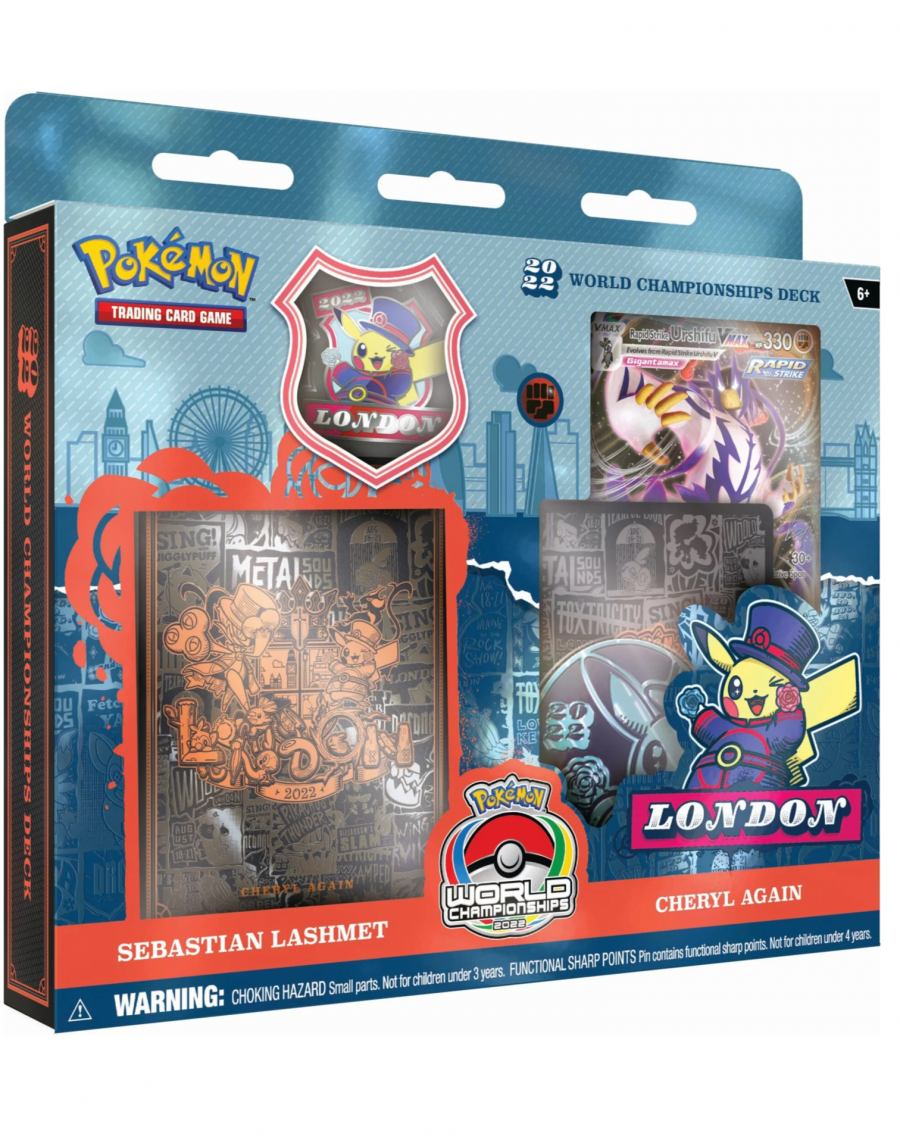Specjalny pakiet Championship (Cheryl Again), z którym grał Sebastian Lashmet na Mistrzostwach Świata TCG 2022 w Londynie. Oprócz samych kart w zestawie znajdziecie pudełko na karty, booklet, przypinkę, monetę, matę do gry i plakat.ZAWARTOŚĆ ZESTAWU