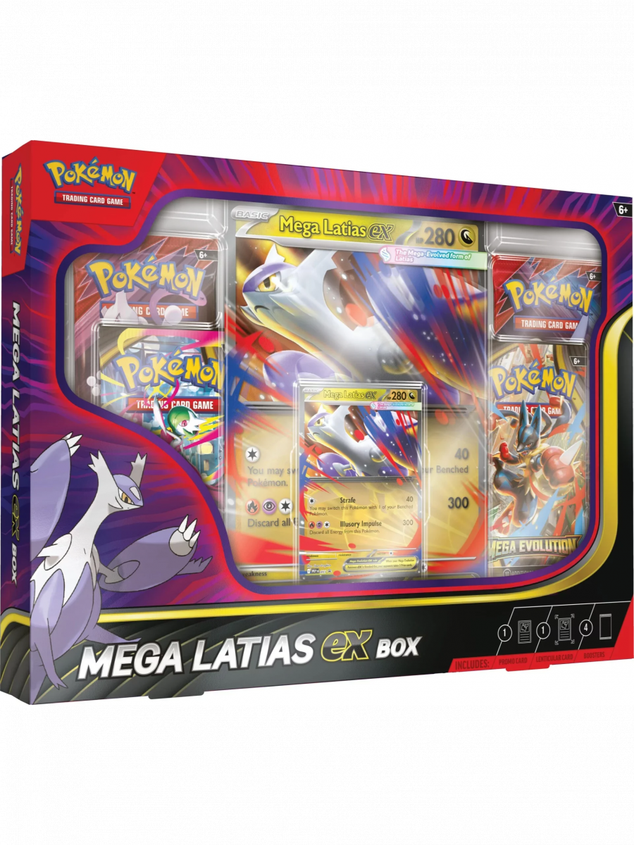 Przygotuj się na siłę Mega Ewolucji z Pokémon TCG: ex Box – Mega Latias! Ten specjalny zestaw zawiera kartę promocyjną Mega Latias EX, dodatkowe boostery i wszystko, czego potrzebujesz, aby wzmocnić swoją talię.