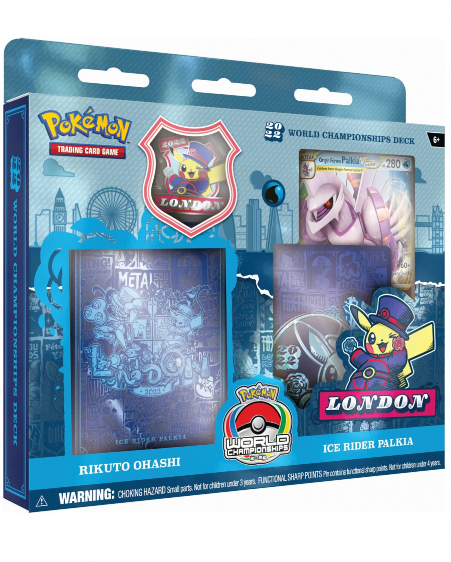 Specjalny pakiet Championship (Ice Rider Palkia), z którym grał Rikuto Ohashi na TCG 2022 World Championships w Londynie. Oprócz samych kartek w pakiecie znajdziesz pudełko na karty, booklet, pin, monetę, matę do gry i plakat.ZAWARTOŚĆ OPAKOWANIA