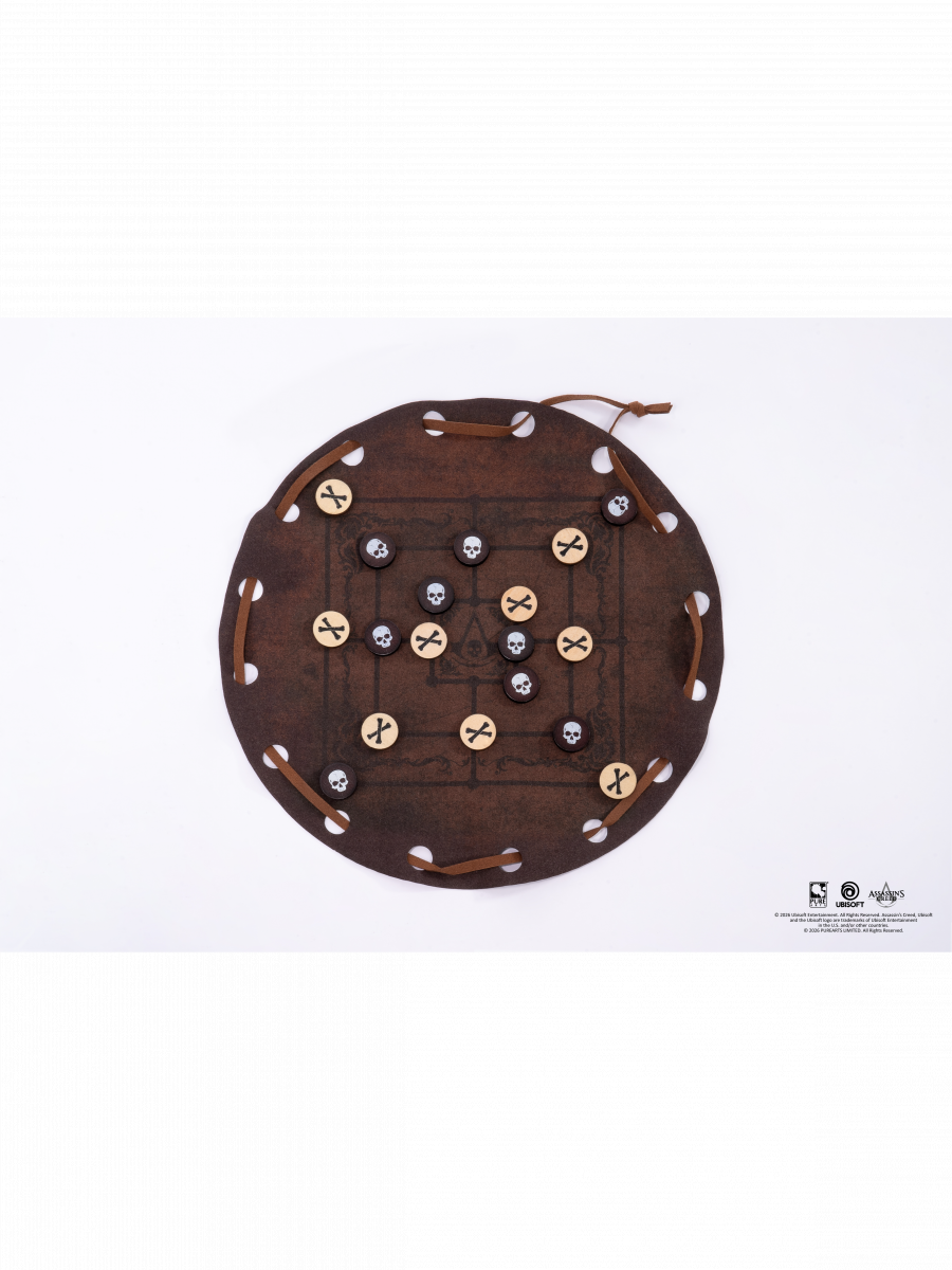 Tradycyjna gra strategiczna w pirackim stylu Assassin’s Creed Black Flag. Nine Men’s Morris zyskało stylową oprawę ze skórzaną planszą do gry, drewnianymi żetonami i kultowymi motywami czaszek oraz skrzyżowanych kości.