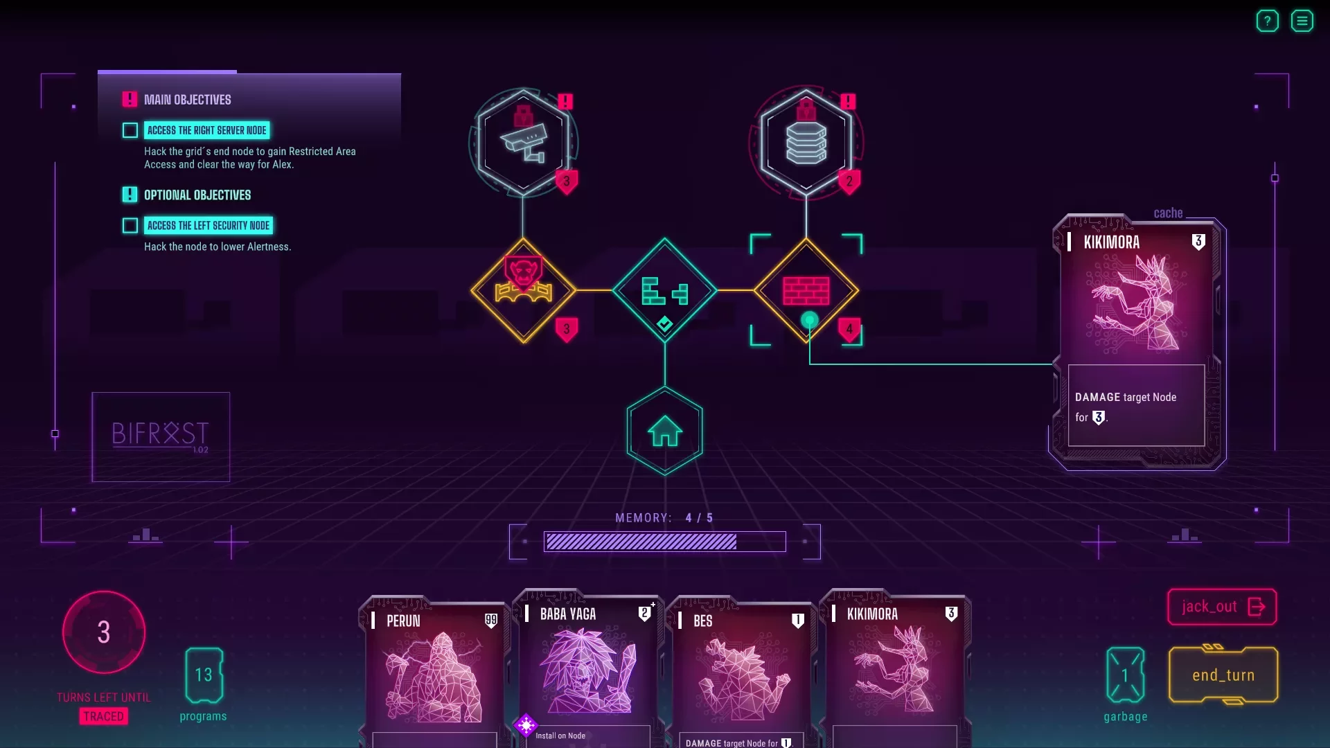 Jeśli hakowanie się nie powiedzie, a konflikt jest nieunikniony, gra natychmiast przechodzi w tryb walki, gdzie rozpoczyna się bitwa przy użyciu kart taktycznych. Za pomocą bojowej talii kart możesz znaleźć własny styl gry, ulepszać ulubione karty i łączyć potężne komba.