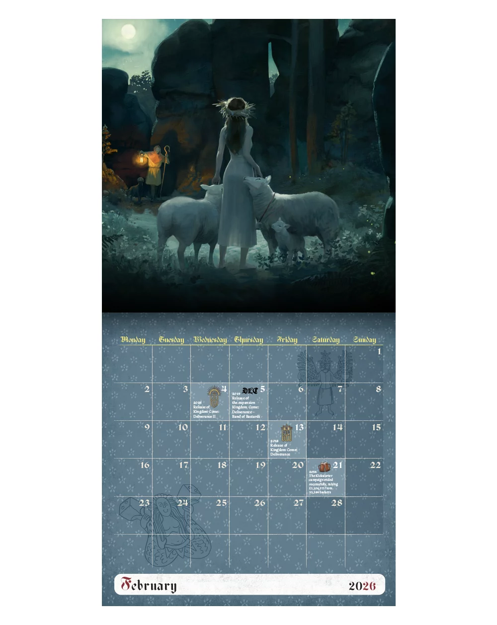 Kalendarz zawiera również ważne daty związane z serią Kingdom Come i jest dzięki temu nie tylko praktycznym, ale także kolekcjonerskim egzemplarzem dla wszystkich fanów wspaniałego dzieła Warhorse Studios.