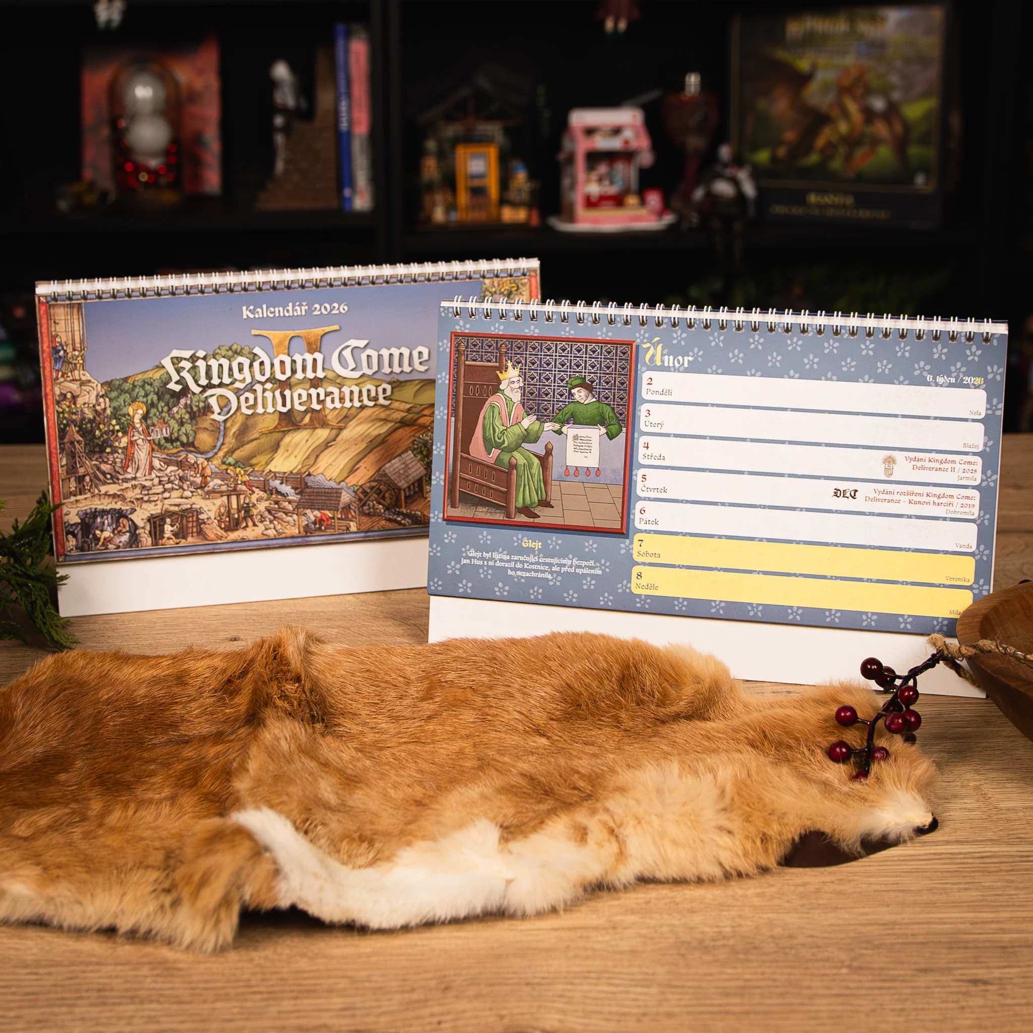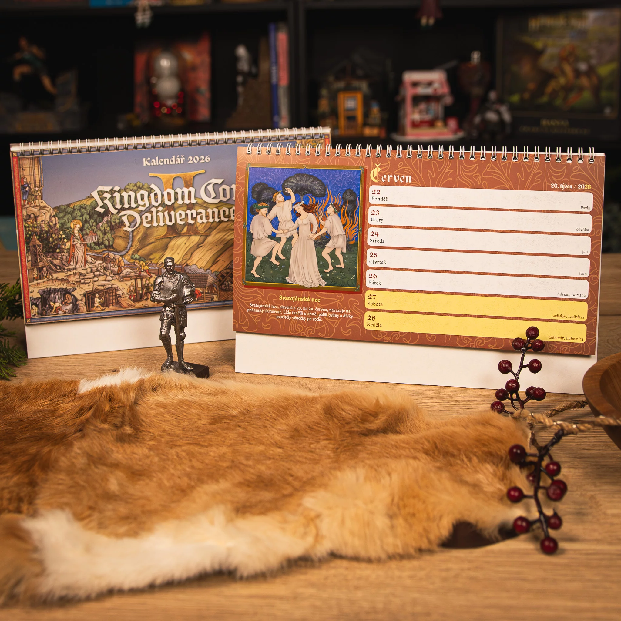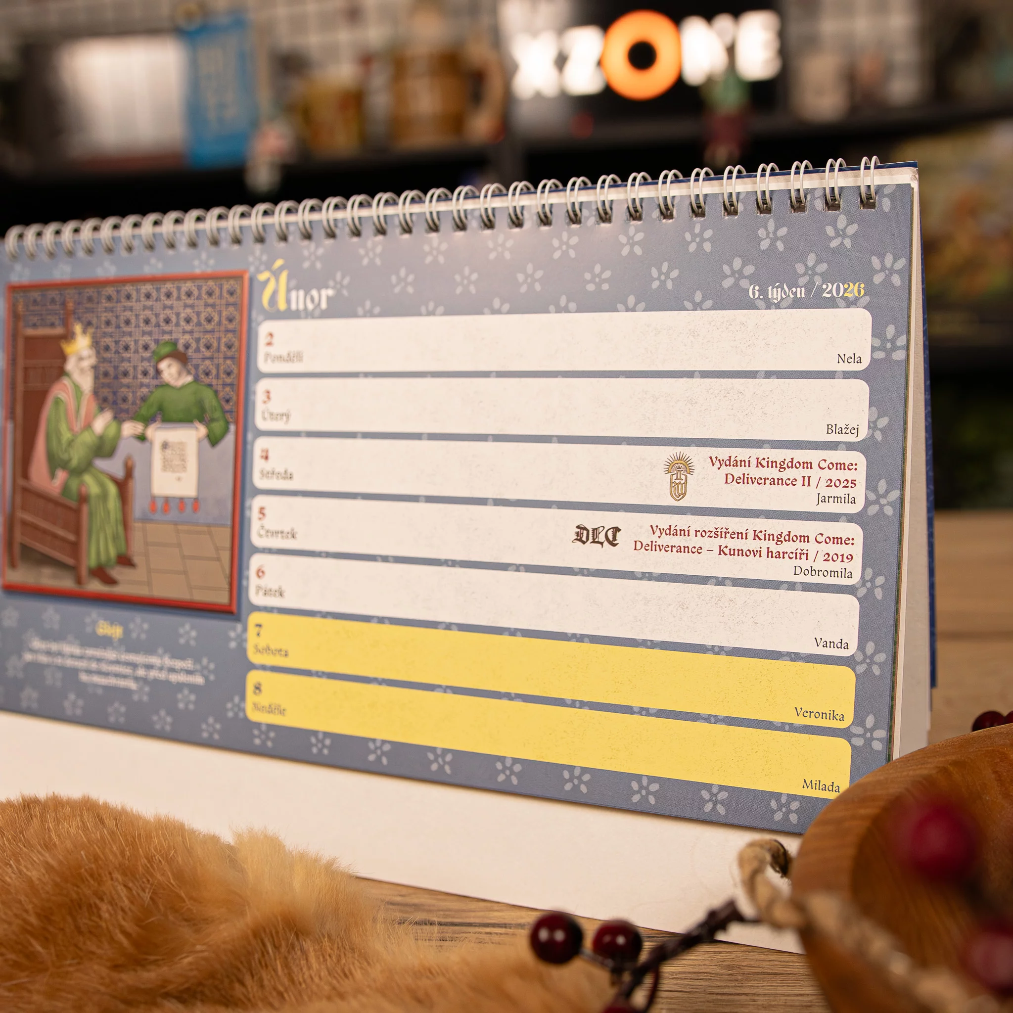 Przeżyjcie rok 2026 w średniowiecznym rytmie z oficjalnym kalendarzem biurkowym Kingdom Come: Deliverance II. Każdemu tygodniowi towarzyszy ilustracja z kodeksu gry, dzięki czemu za każdym razem poznacie jakąś ciekawostkę, od bitew i życia obozowego po święta i zwyczaje ówczesnych Czechów.
