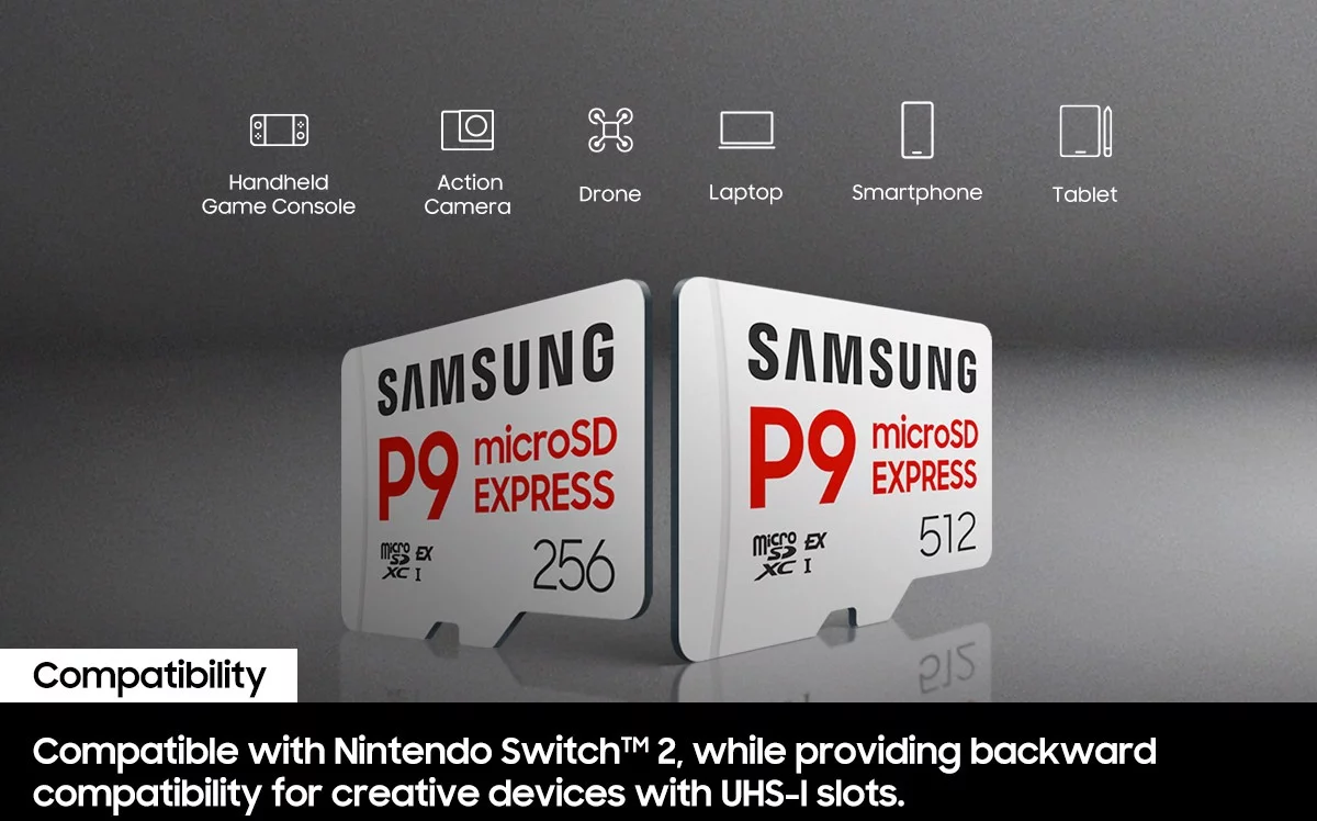 Ciesz się płynną rozgrywką dzięki karcie pamięci P9 Express, która jest kompatybilna z Nintendo Switch™ 2.