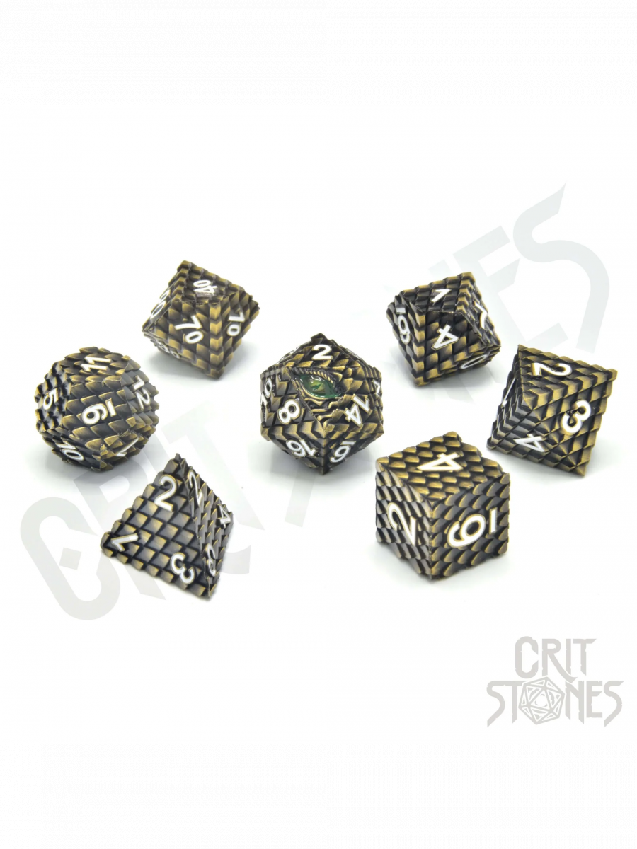 Zestaw Drudaxizius Metal wygląda, jakby strzegł go sam pradawny smok. Metalowe kostki z reliefem smoczych łusek i oczami pełnymi mocy dodają każdemu rzutowi epickiego charakteru.