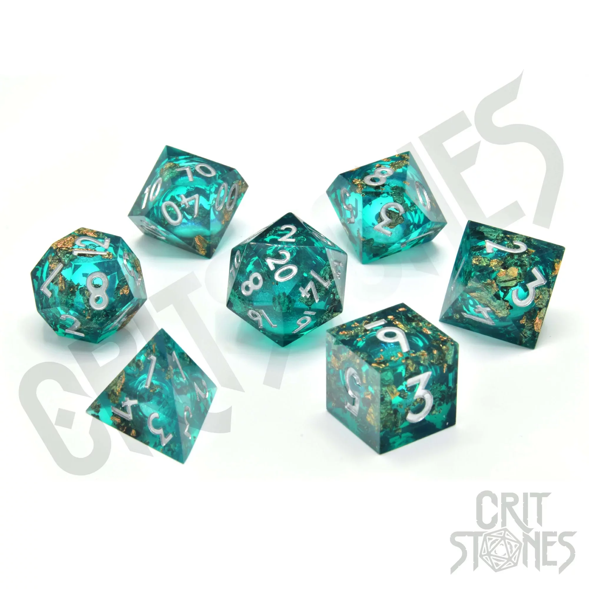Zestaw Forest Fountain Liquid Core zachwyca przezroczystym, szmaragdowym wyglądem z płynnym wnętrzem, które przy każdym rzucie porusza się niczym żywe. Złotozielone brokaty dodają wrażenia, że w kostkach płynie sama magia przyrody.