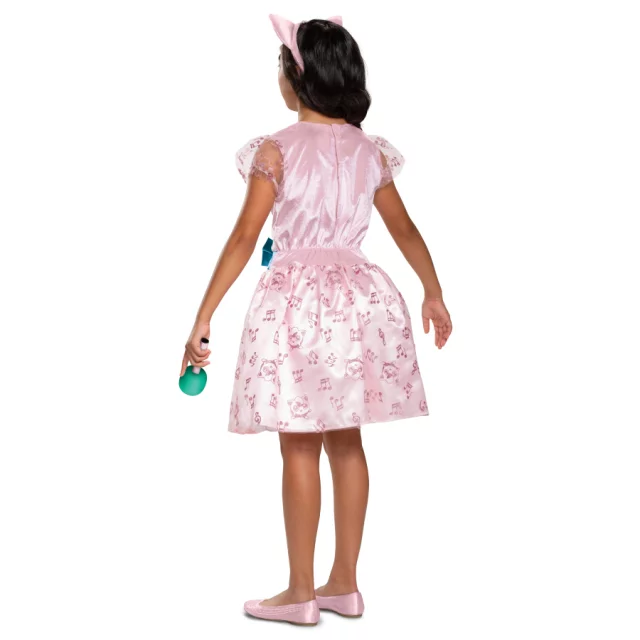 Różowa sukienka z muzycznymi motywami, błyszczącymi rękawkami, mikrofonem i kokardką w pasie uzupełniona jest opaską z uszkami Jigglypuffa. Idealny wybór na bal przebierańców, przyjęcie urodzinowe lub zabawę w domu – magia i urok Pokémonów w jednym stroju!ROZMIARY