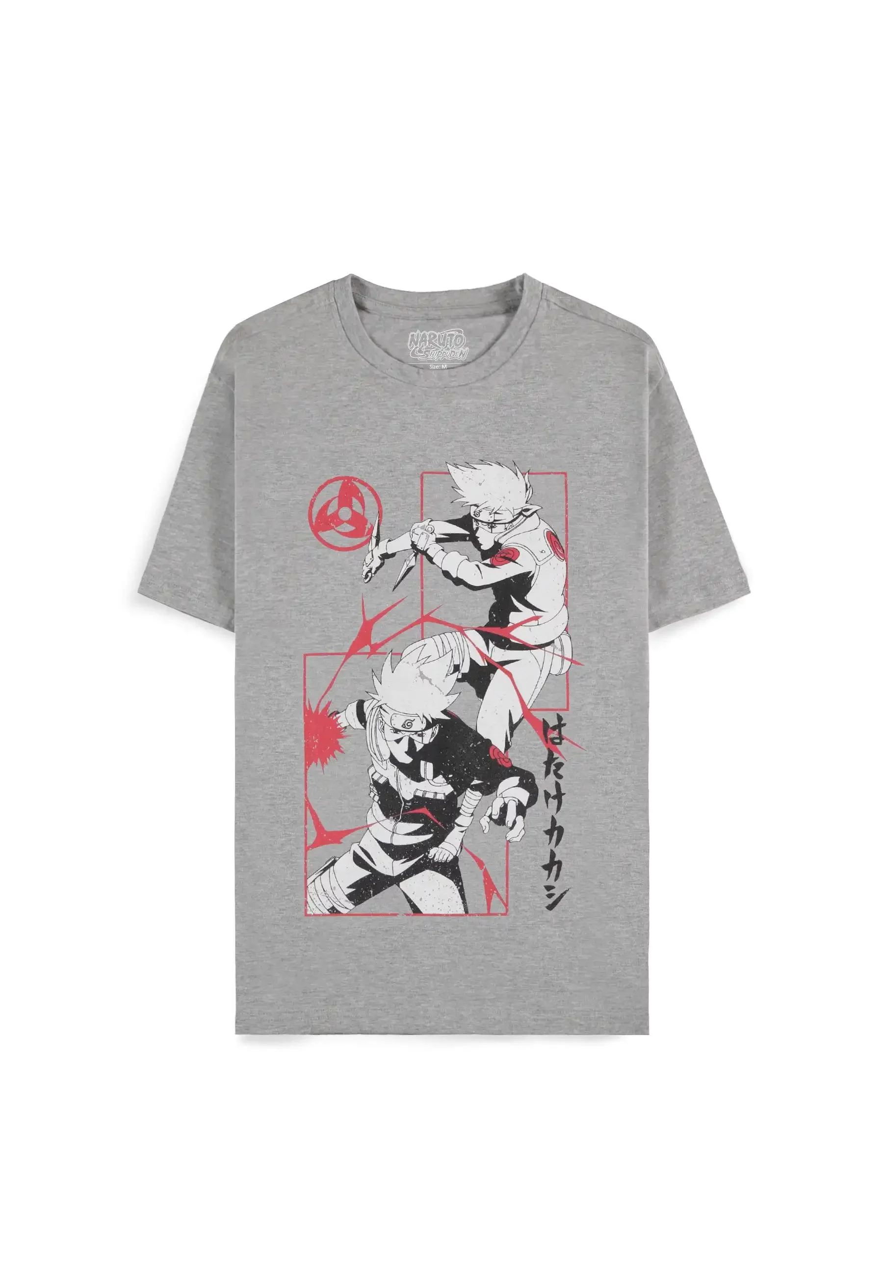 • Stylowa koszulka z Kakashim Hatake w dynamicznym anime motywie, który przyciąga wzrok od pierwszego wejrzenia. Kontrastowe czerwone elementy i kultowy Sharingan jasno dają do zrozumienia, że masz do czynienia z jednym z najpotężniejszych ninja ze świata Naruto.