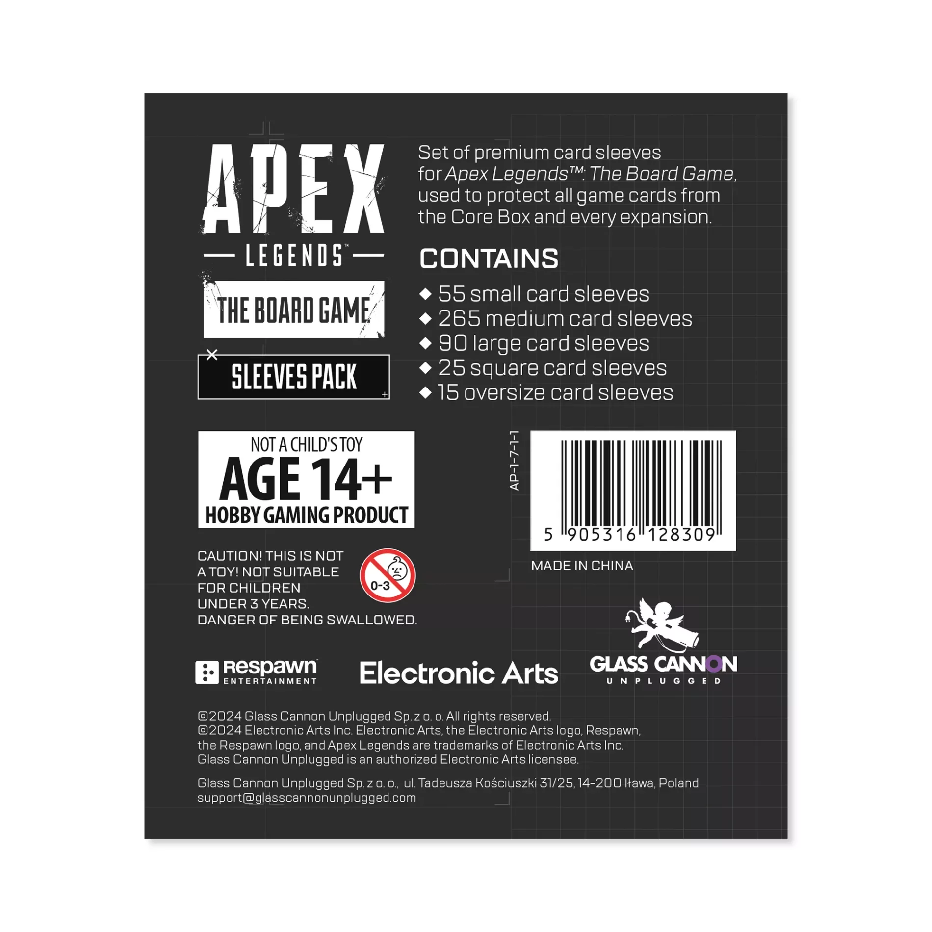 Zestaw premium koszulek na karty do gry planszowej Apex Legends, zawierający koszulki, za pomocą których można chronić karty z podstawowej gry oraz ze wszystkich dodatków.