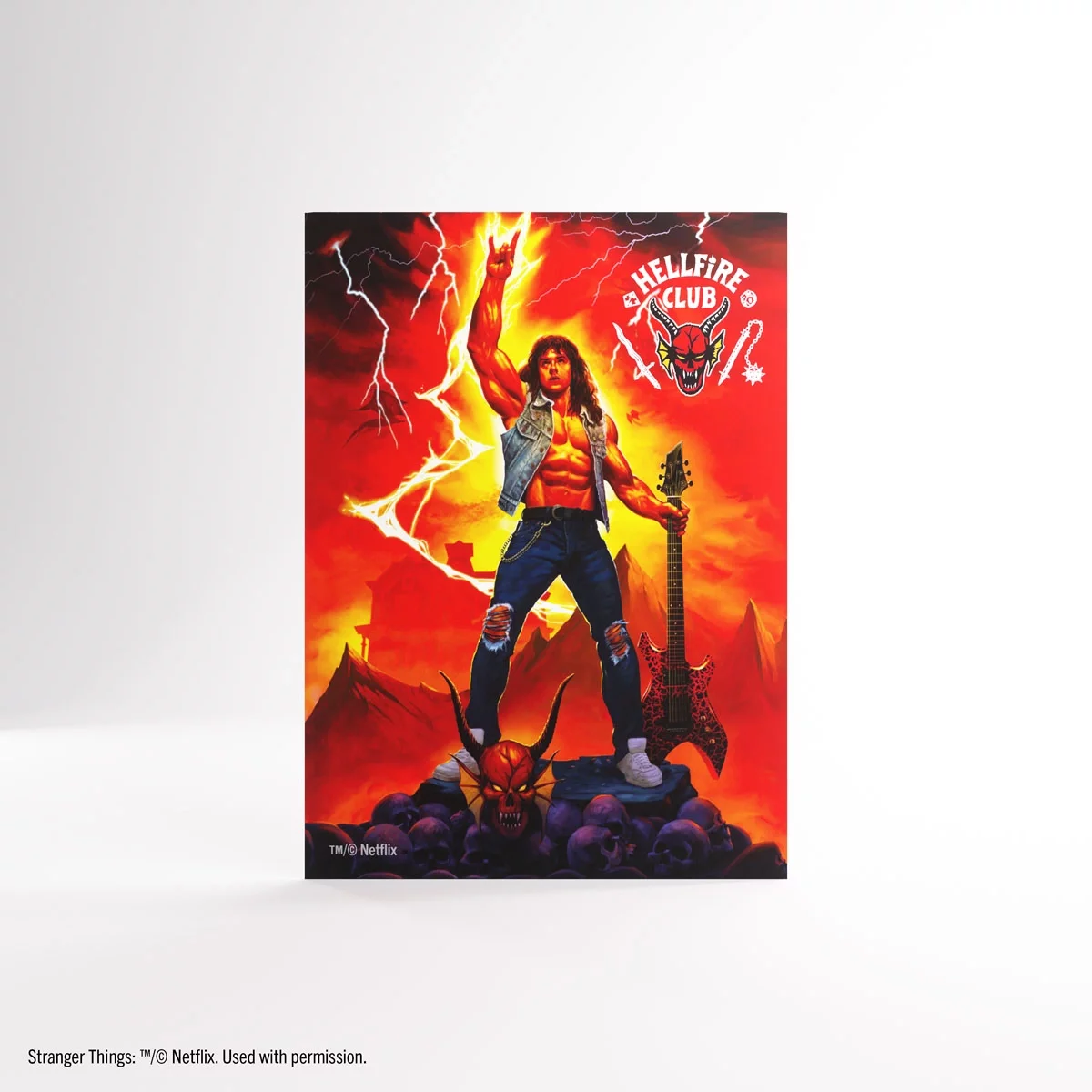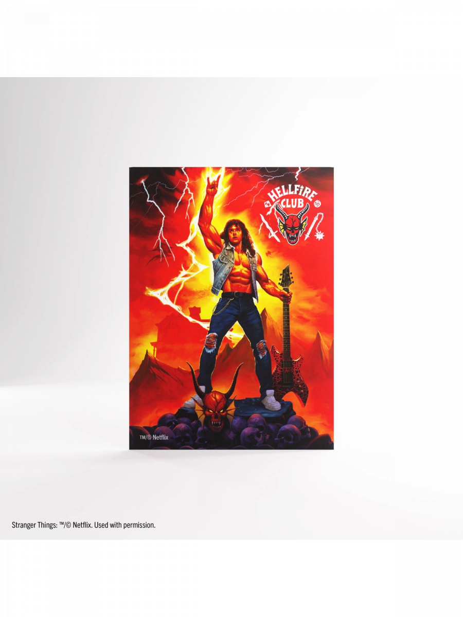 Doskonałe obwoluty ochronne Hellfire Club: Art Sleeves Eddie Munson od Gamegenic to idealny dodatek dla wszystkich fanów Stranger Things™. Te oficjalnie licencjonowane, matowe obwoluty z pełnokolorowym nadrukiem przedstawiają kultowy motyw Eddiego Munsona i jego niezapomniany metalowy styl z Hellfire Club.