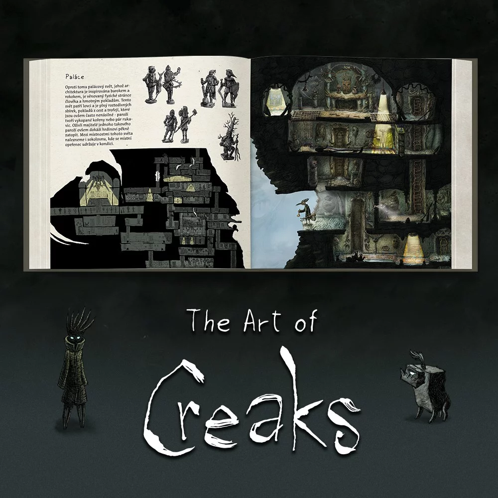 Książka The Art of Creaks to symboliczna wisienka na torcie wieńcząca 8 lat wysiłku, który towarzyszył powstawaniu gry. Autorzy Radim Jurda i Jan Chlup własnymi słowami przeprowadzą Cię przez początki produkcji, setki szkiców koncepcyjnych, aż po finałowe dzieło audiowizualne, nad którym pracował zespół utalentowanych czeskich twórców.
