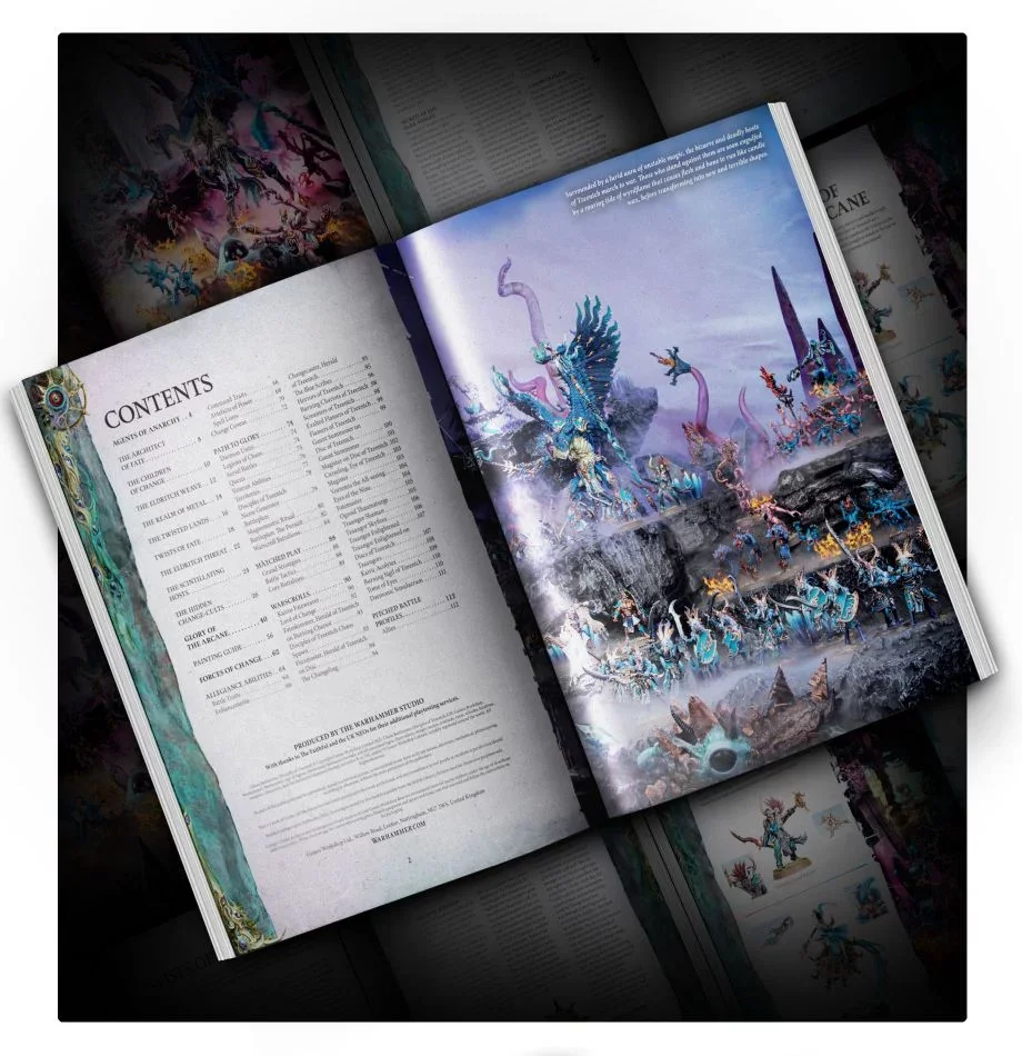 Ta książka przedstawi Wam fascynującą historię Disciples of Tzeentch i jest pełna wspaniałych artów i ilustracji. Znajdziecie tu również zdolności tych jednostek oraz ich cechy bojowe. W książce znajdują się także plany bitew, instrukcje stworzenia warbandy Disciples of Tzeentch, 31 warscrolli, zasady dla Path of Glory, profile bojowe wszystkich jednostek wraz z ich zaklęciami i wiele więcej.