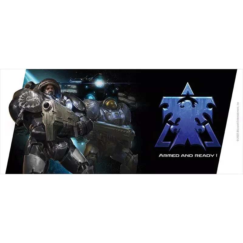 Stylowy kubek, który zdobią Terran z gry StarCraft. Idealny do uzupełniania płynów podczas długich sesji wideo gier.Pojemność: ok. 320 ml