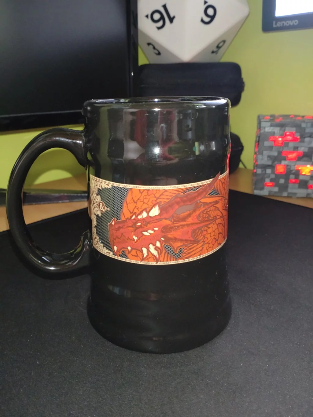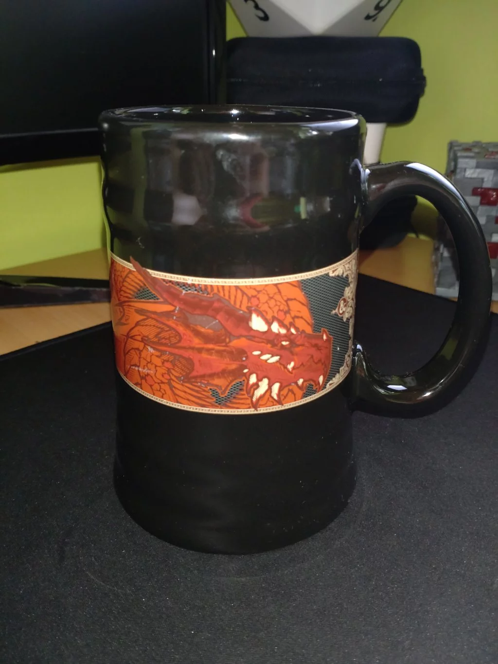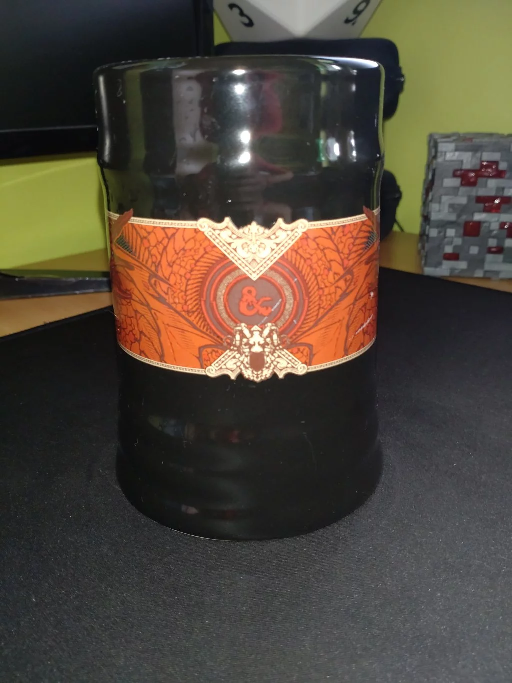 Absolutnie znakomite naczynie do picia, początkowo kupiłem je, aby je wyeksponować, ale z wszystkich moich naczyń zawsze piję przynajmniej raz. Szerokie dno zapewnia doskonałą stabilność, a wysokiej jakości powierzchnia pozwala na codzienne użytkowanie. Dodatkowo design pasuje do każdego otoczenia i docenią go również osoby, które nie znają DnD.