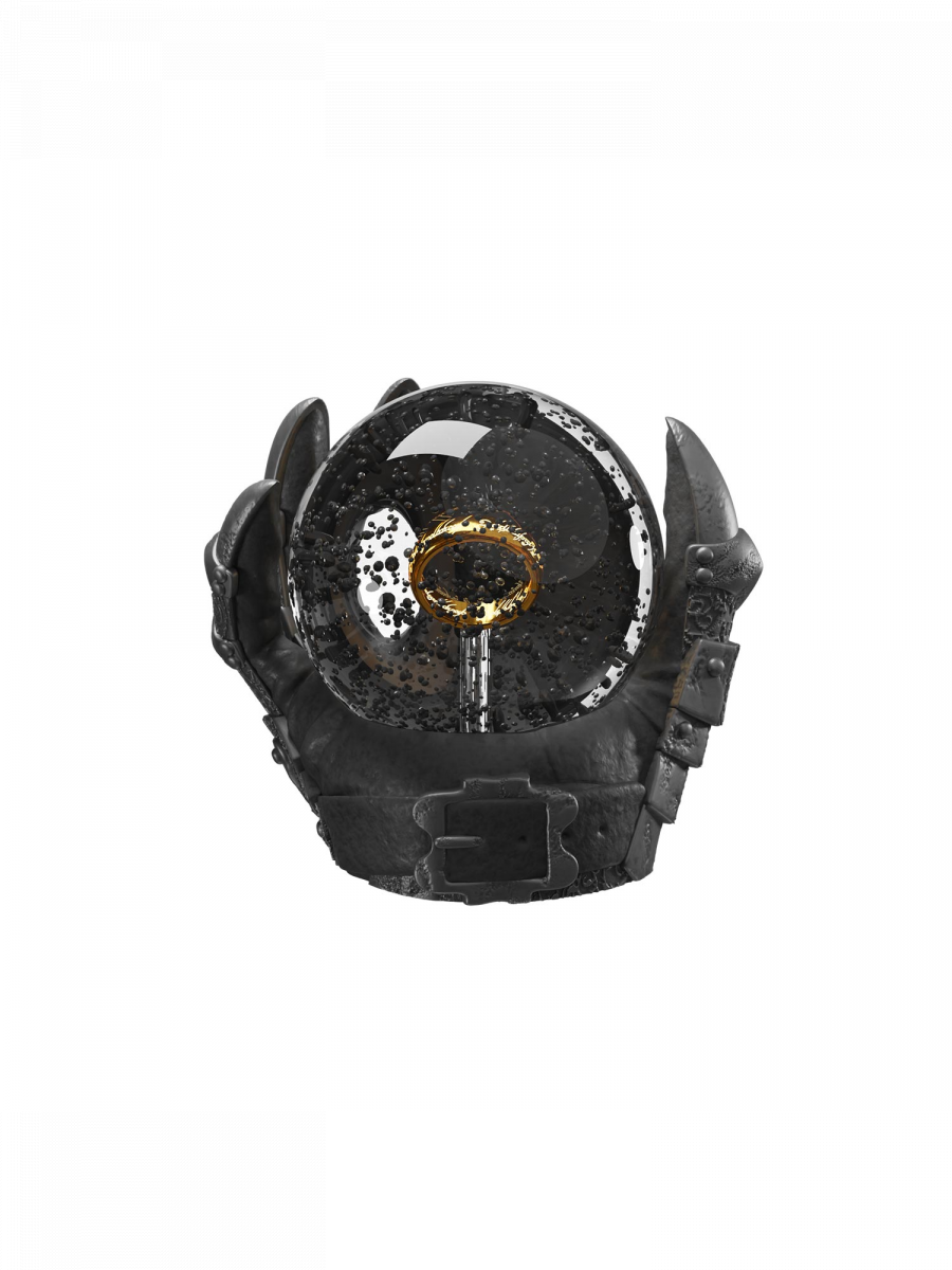 Kula śnieżna Lord of the Rings – Sauron uwiecznia ikoniczny Jeden Pierścień w mrocznej, dramatycznej kompozycji, uwięziony w rękawicy Władcy Ciemności. Po potrząśnięciu wokół niego wirują mroczne drobinki, które tworzą imponujący efekt rodem z głębin Śródziemia.