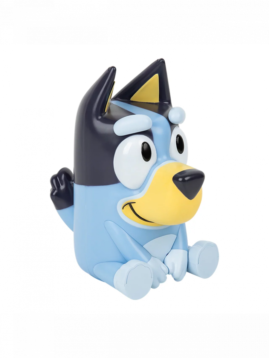 Lampka Bluey – Bluey rozświetli pokój dziecka delikatnym światłem i zachwyci każdego fana popularnego psiaka. Dodatkowo, wydaje dźwięki z serialu, co czyni ją zabawnym i magicznym dodatkiem podczas zasypiania i zabawy.