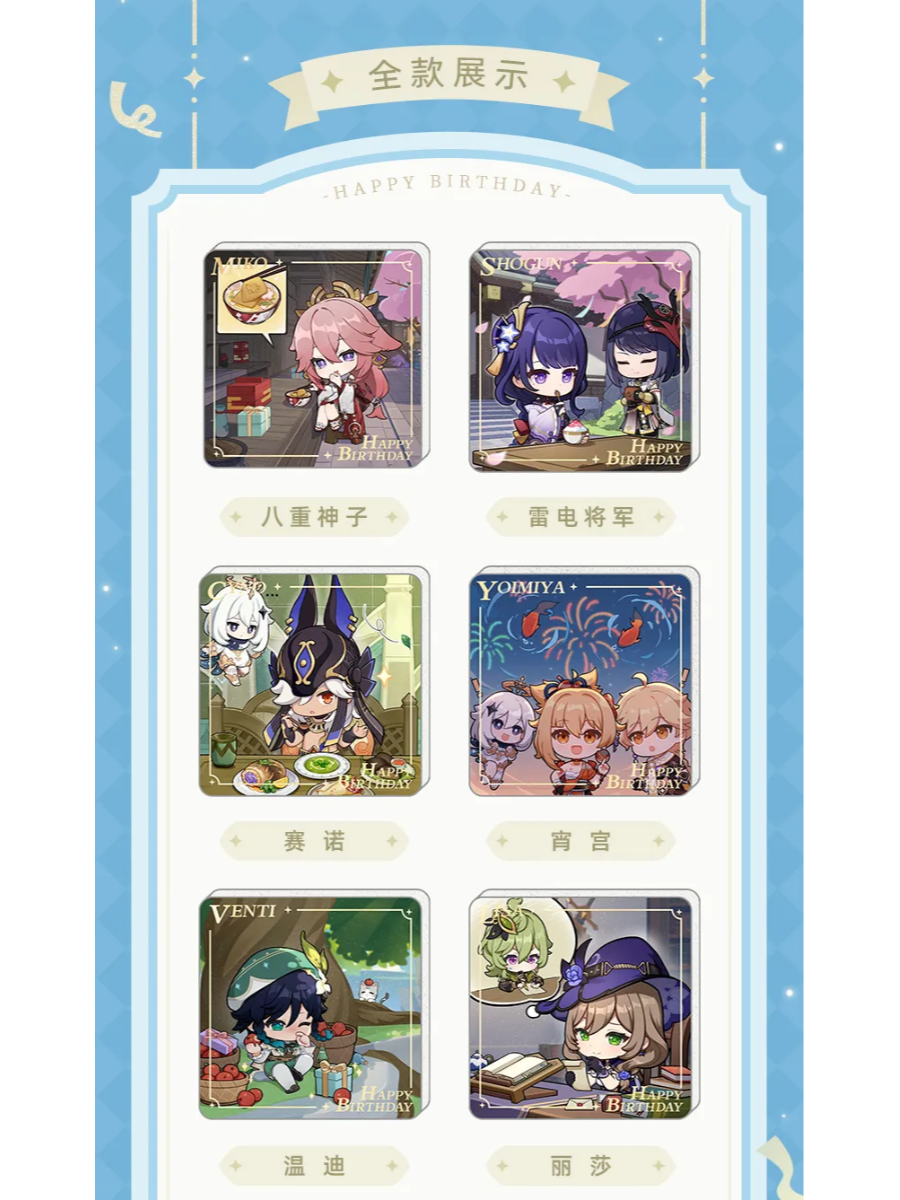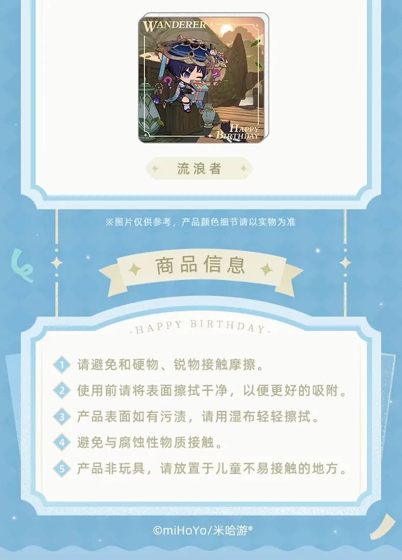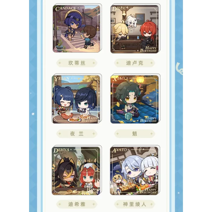 Uroczy magnes z postaciami chibi z Genshin Impact, który przypomni Ci o ulubionych bohaterach przy każdym spojrzeniu. Każdy motyw oddaje wyjątkową atmosferę urodzin poszczególnych postaci i ich charakterystyczny styl.