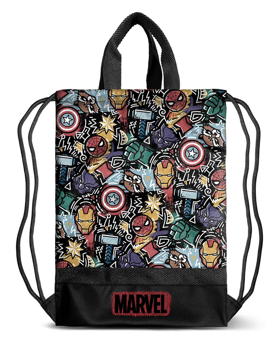 Marvel Freetime Gymbag - Do uprawiania sportu i WF tylko z gymbag! A czemu nie z takim gdzie można znaleźć słynnych bohaterów z Marvela? Gymbag posiada wzmocnione dno z wysokiej jakości materiału oraz poziomy pasek z przewiewnej siateczki. Dodatkowo posiada rączkę u góry oraz małą kieszonkę wewnątrz na portfel, klucze itp.