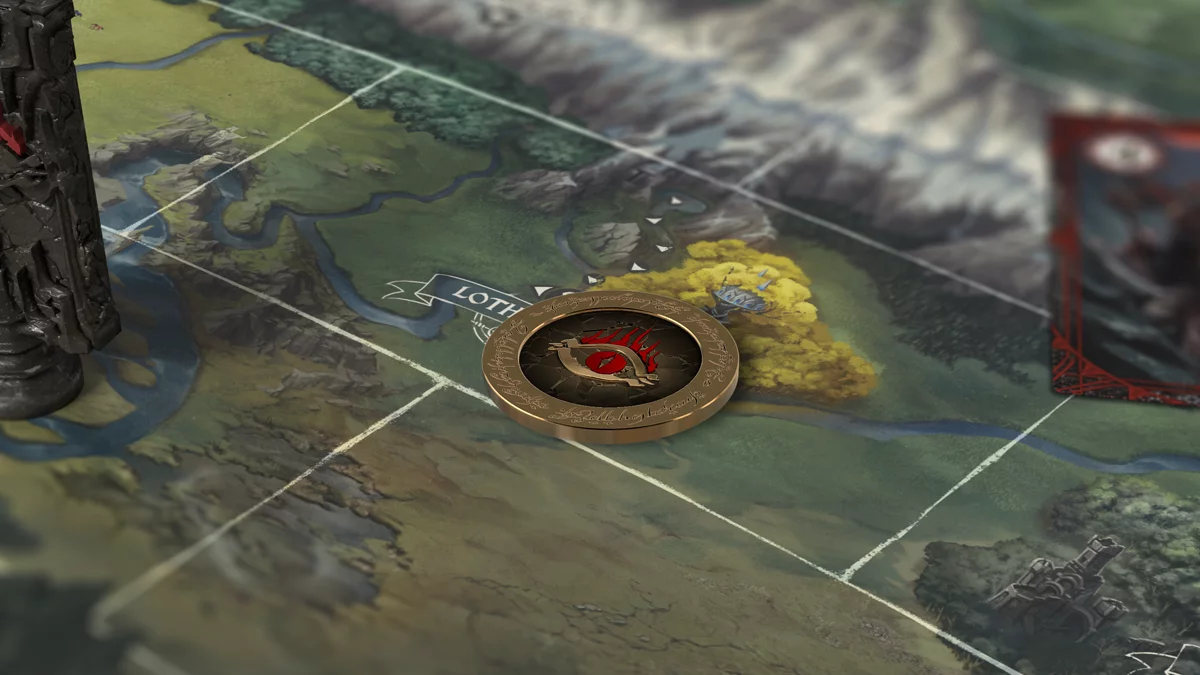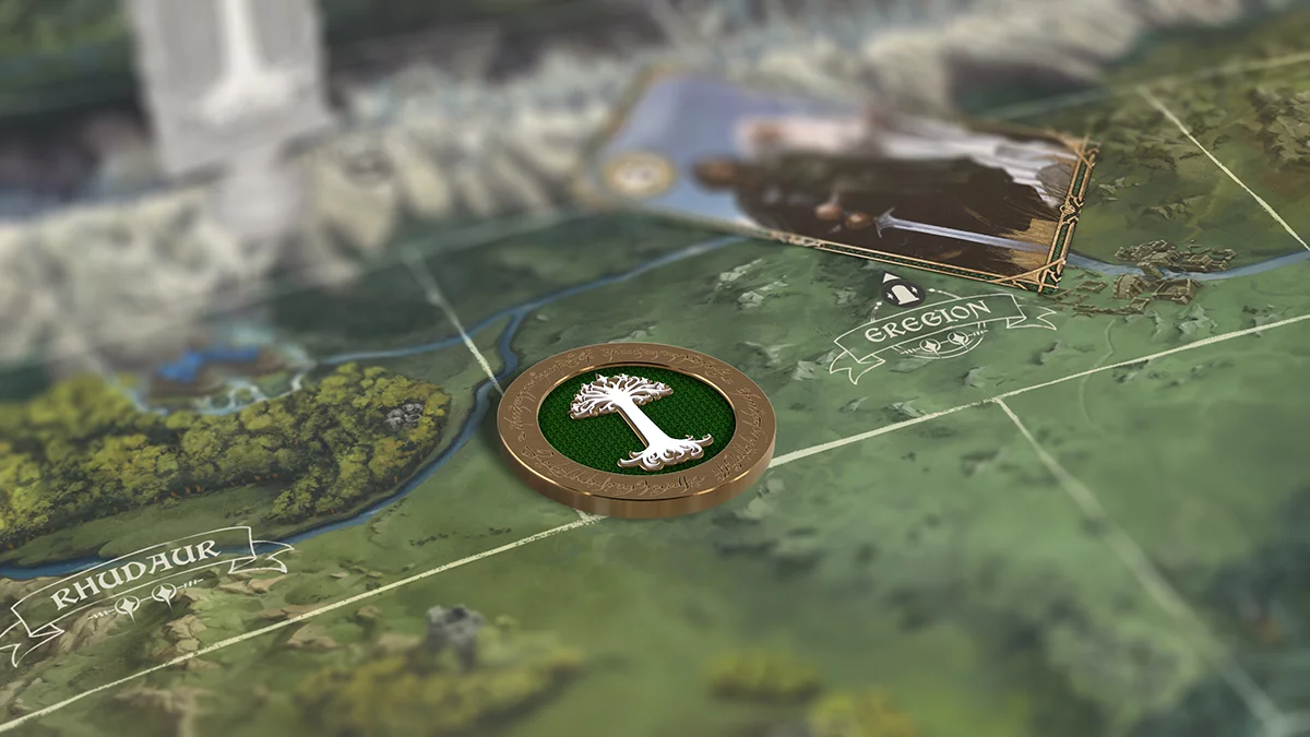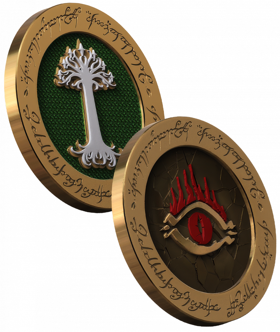 Premium brązowa moneta wyzwania powstała jako ekskluzywny dodatek do gry Władca Pierścieni: Konfrontacja. Na jednej stronie widnieje emblemat Drużyny Pierścienia, inspirowany legendarnym Białym Drzewem Gondoru, natomiast druga strona przedstawia wszechwiedzące Oko Saurona, osadzone pośród postrzępionych grzbietów Ephel Dúath.MONETA ZDECYDUJE