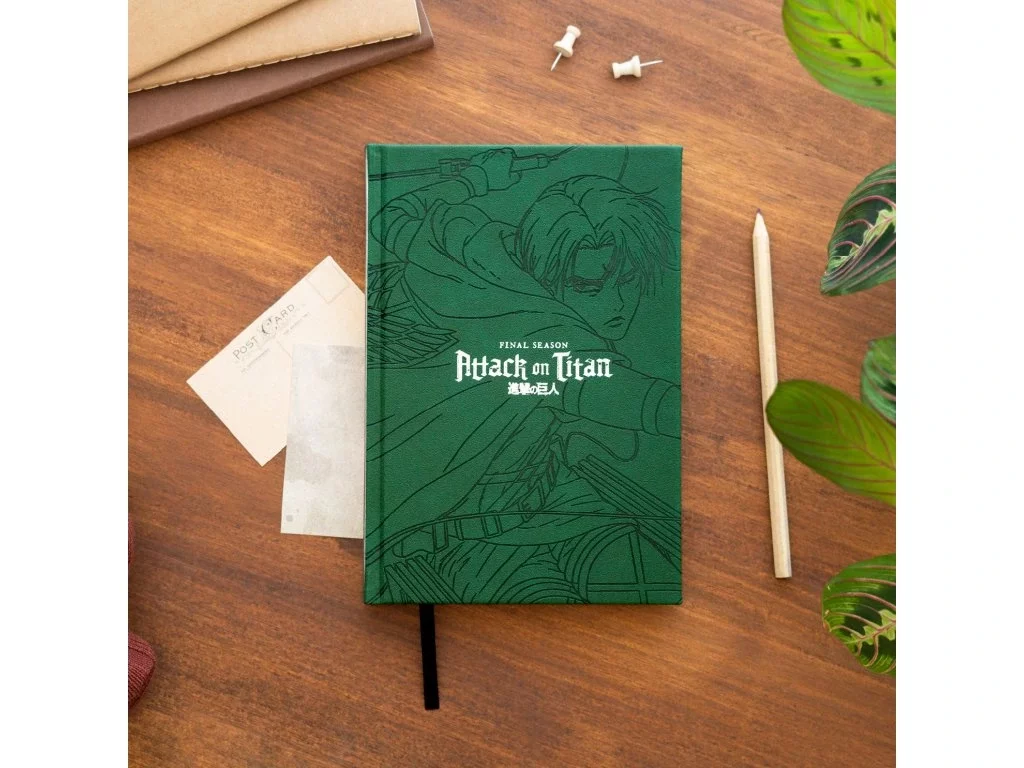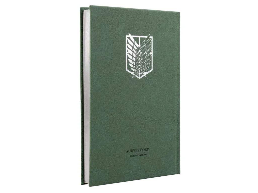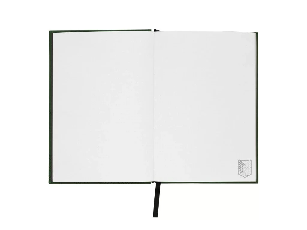 Elegancki notes inspirowany anime Attack on Titan zachwyci każdego członka Korpusu Zwiadowczego! Stylową zieloną okładkę zdobi motyw z finałowej serii oraz emblemat Skrzydeł Wolności (Wings of Freedom) – symbol odwagi i swobody.