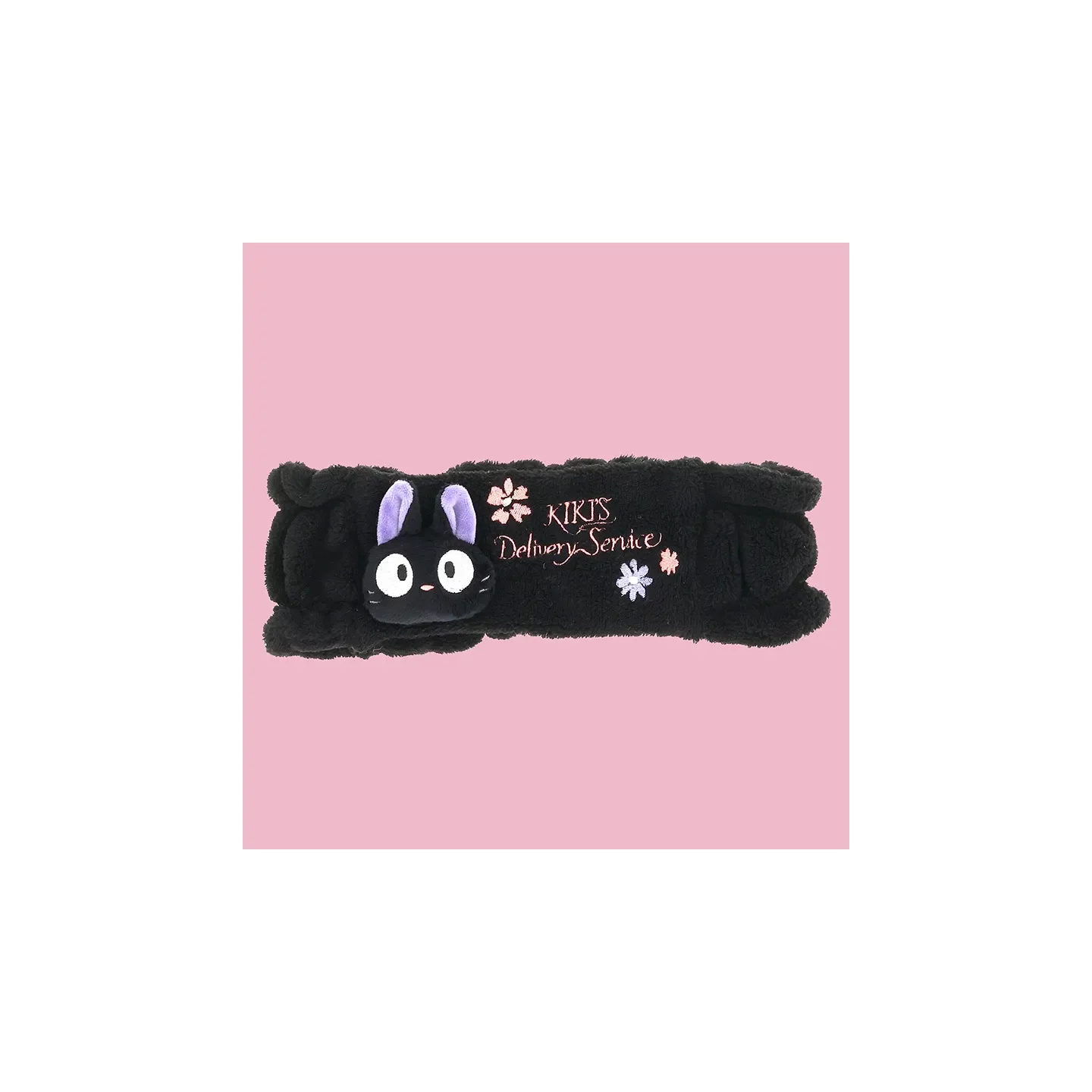 Uroczy Jiji jako stylowy dodatek do codziennej pielęgnacji. Ta miękka opaska z motywem Podniebnej poczty Kiki zachwyca delikatnym kwiatowym wzorem i radosnym wykonaniem, które ucieszy każdego fana.