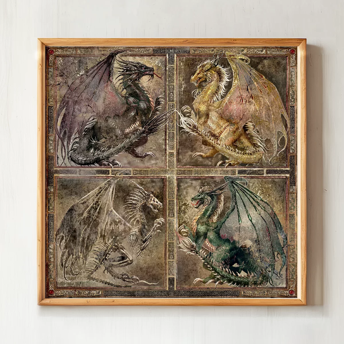 Każdy plakat ma wymiary 60 × 60 cm i jest wydrukowany na wysokiej jakości grubym papierze z matowym wykończeniem, które pozwala wyeksponować bogate detale ilustracji. Plakaty są dostarczane bez ram, zwinięte razem w tubie, gotowe do ozdobienia kącika gracza, gabinetu lub kolekcjonerskiej ściany.