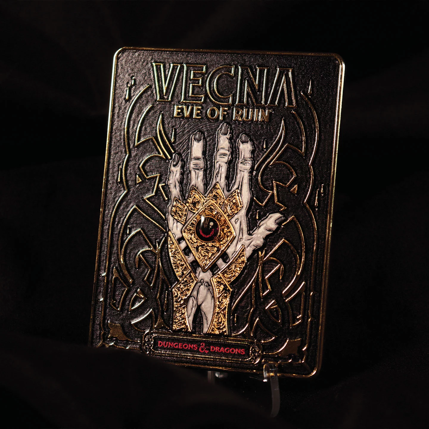 Zostaw ślad mrocznej magii w swojej kolekcji dzięki tej oficjalnej, limitowanej plakiety inspirowanej Dungeons and Dragons, Vecna Eve of Ruin. Wysokiej jakości metalowe wykonanie z wyrazistym reliefem podkreśla kultowy kształt dłoni Vecny i mistyczne runy, które natychmiast przyciągną uwagę każdego fana świata DnD.