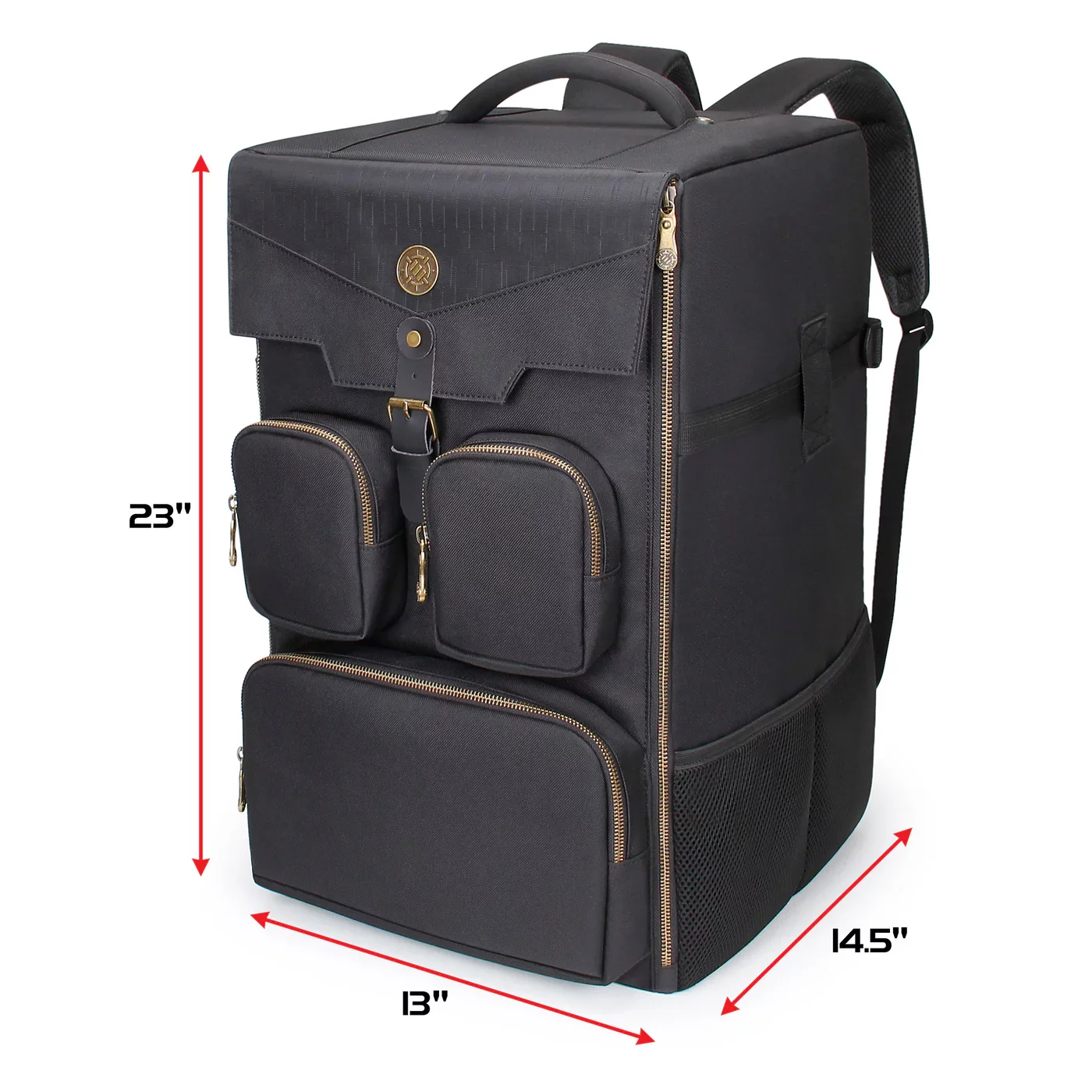 Zabierz na wieczór gier wszystkie swoje gry planszowe, karcianki i akcesoria do D&D w tym wyjątkowo pojemnym plecaku o sztywnej konstrukcji. Dzięki wyściółce z pianki, wzmocnionej polimerowymi płytami, plecak zachowuje kształt i pomieści do 27 kg gier. Zewnętrzne kieszenie są idealne na talie kart i drobne akcesoria, a duża komora główna pomieści Twoje ulubione gry planszowe. Boczne siatki i regulowane paski przydadzą się na butelki z napojami lub mapy. Wewnętrzny, elastyczny pas dodatkowo bezpiecznie unieruchomi gry podczas podróży.