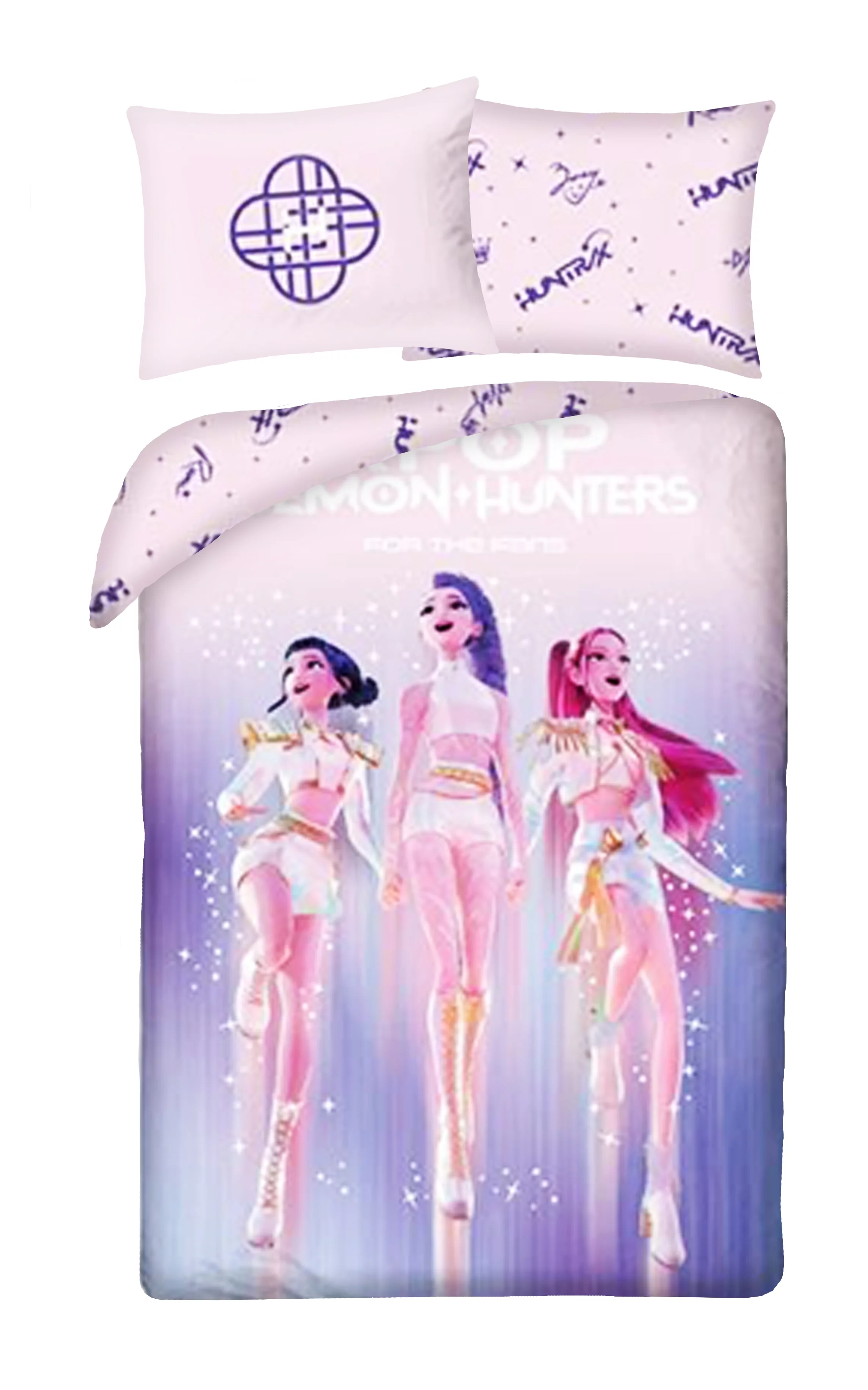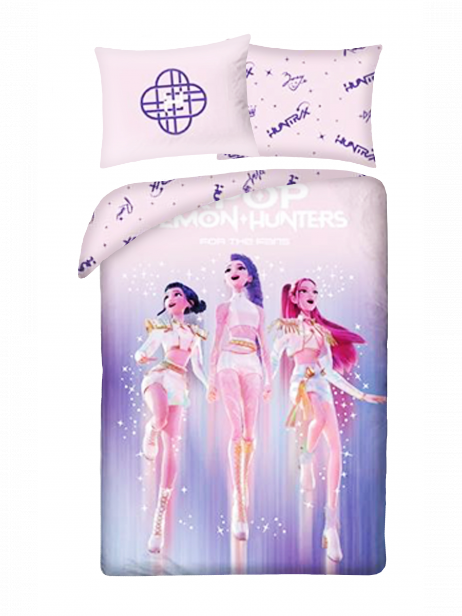 Rozświetl swój pokój energią gwiazd K-Popu. Pościel KPop Demon Hunters – Huntrix Bright łączy delikatne pastelowe odcienie z wyrazistym motywem trójki idoli, którzy lśnią niczym prawdziwe legendy sceny.