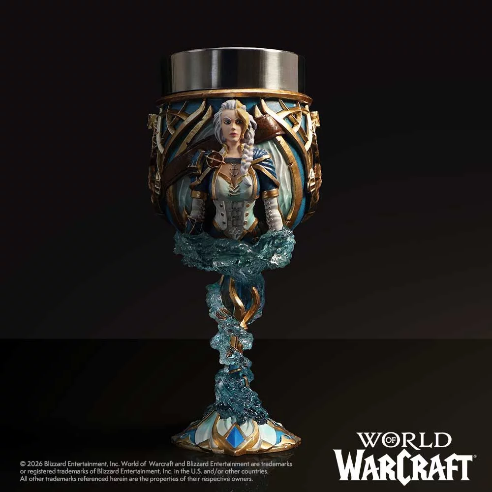 Elegancki puchar inspirowany światem World of Warcraft, który oddaje hołd jednej z najbardziej kultowych bohaterek Azerothu – Jainie Proudmoore. Bogate niebiesko-złote zdobienia, delikatne magiczne motywy oraz szczegółowe wykonanie postaci natychmiast przyciągają wzrok.