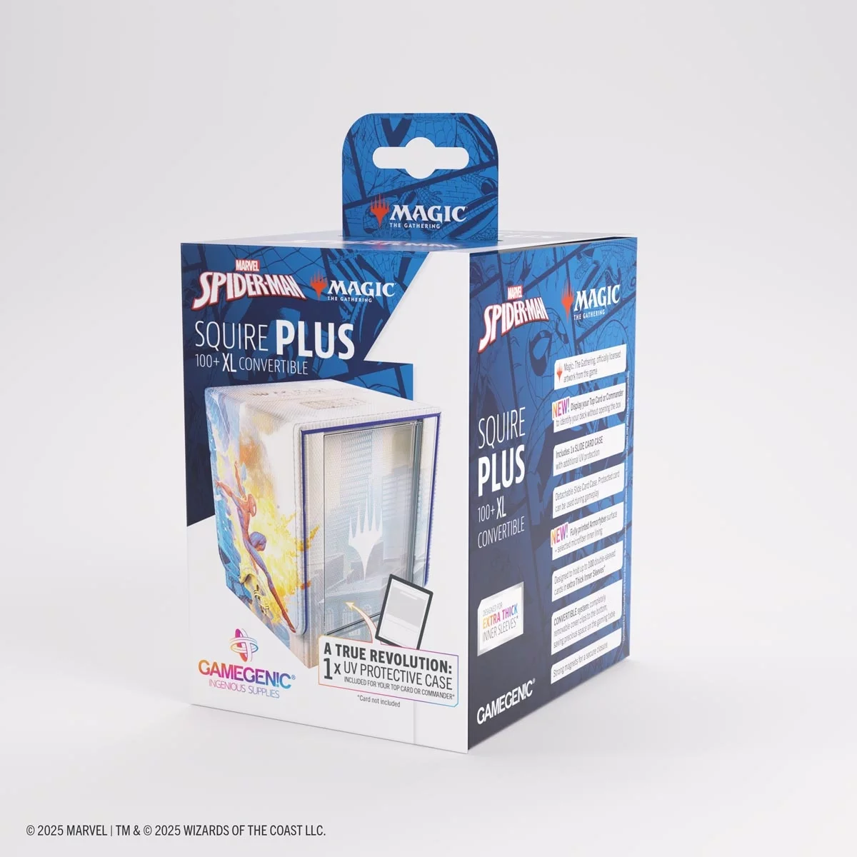 Pudełko premium Art Squire Plus 100+ XL Spider-Man/Green Goblin od Gamegenic łączy świat Magic: The Gathering i Marvela w jeden epicki dodatek. Oficjalnie licencjonowany projekt przedstawia ikoniczny pojedynek Spider-Mana i Green Goblina w dynamicznym, komiksowym stylu.