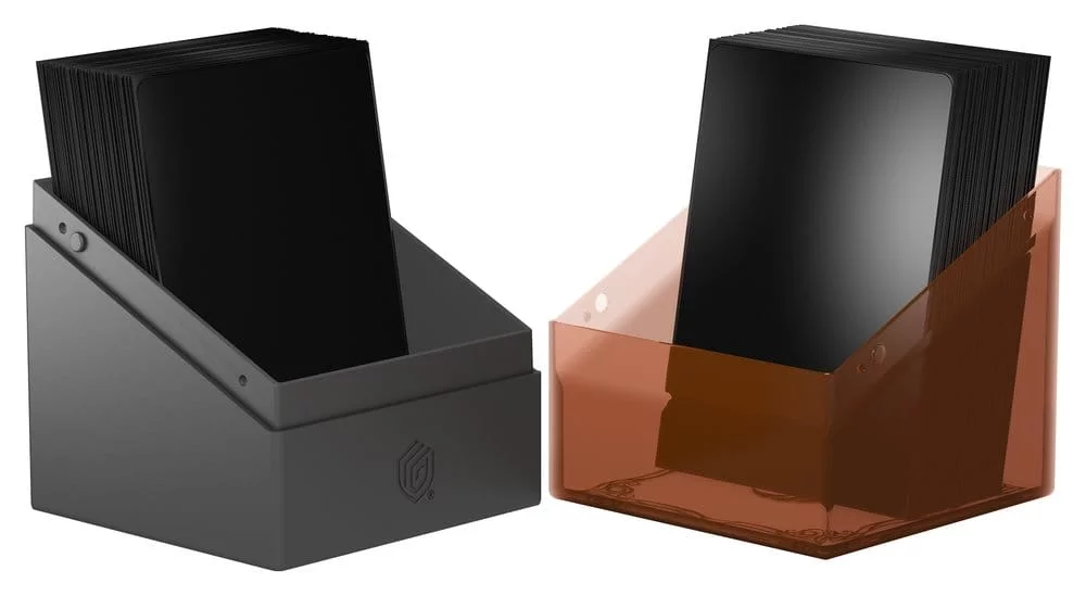 Pomieści do 100 kart w podwójnych koszulkach, a dzięki solidnej budowie niezawodnie chroni talię podczas gry i transportu. Przezroczysta pokrywa z tematycznym nadrukiem dopełnia minimalistyczny korpus pudełka i podkreśla unikalny design całej edycji.