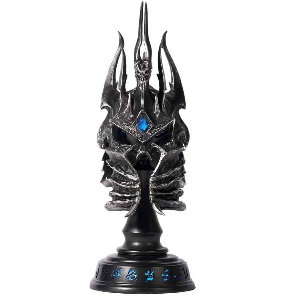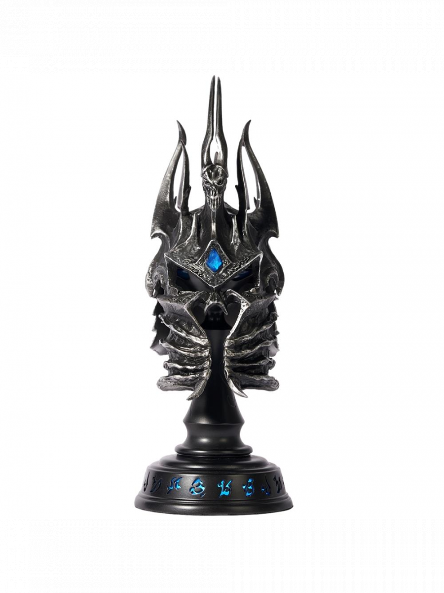 Korpus ze stopu cynku wiernie imituje ciemny metaliczny połysk znany z zwiastuna Wrath of the Lich King, a półprzezroczysty klejnot dodaje hełmowi urzekającego chłodu. Całość uzupełnia podświetlany postument z runami, który po włączeniu budzi mroźną moc Northrendu prosto na Twoim biurku.