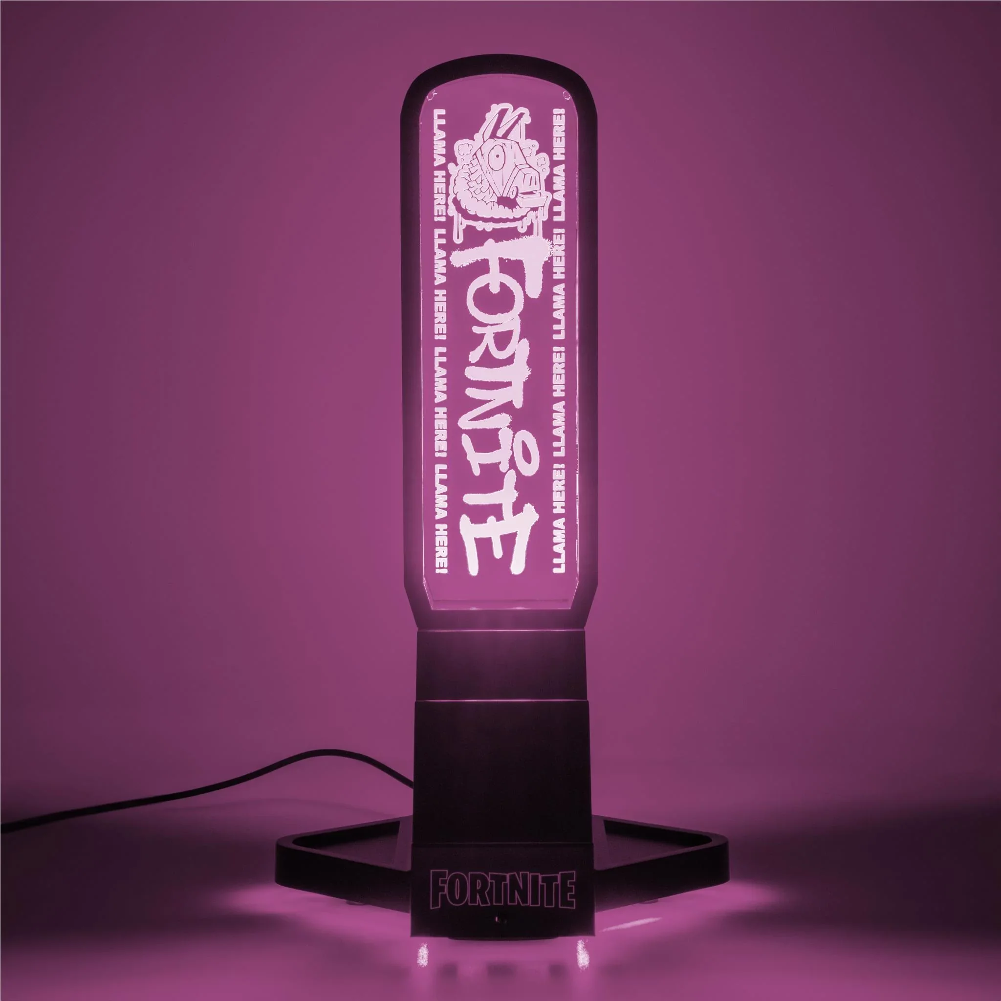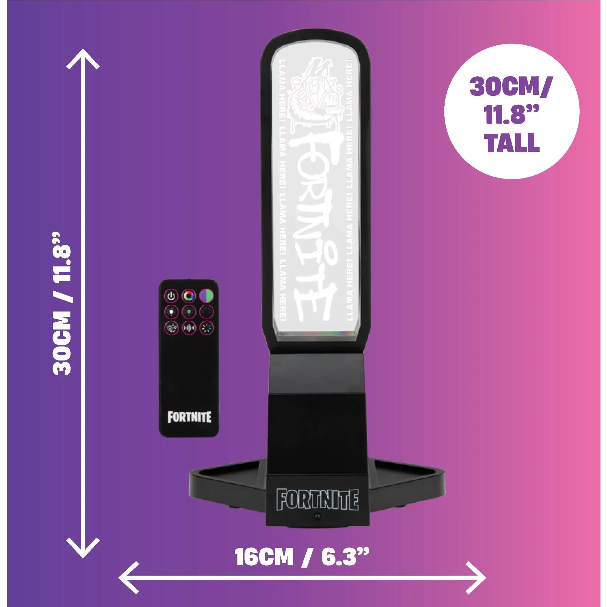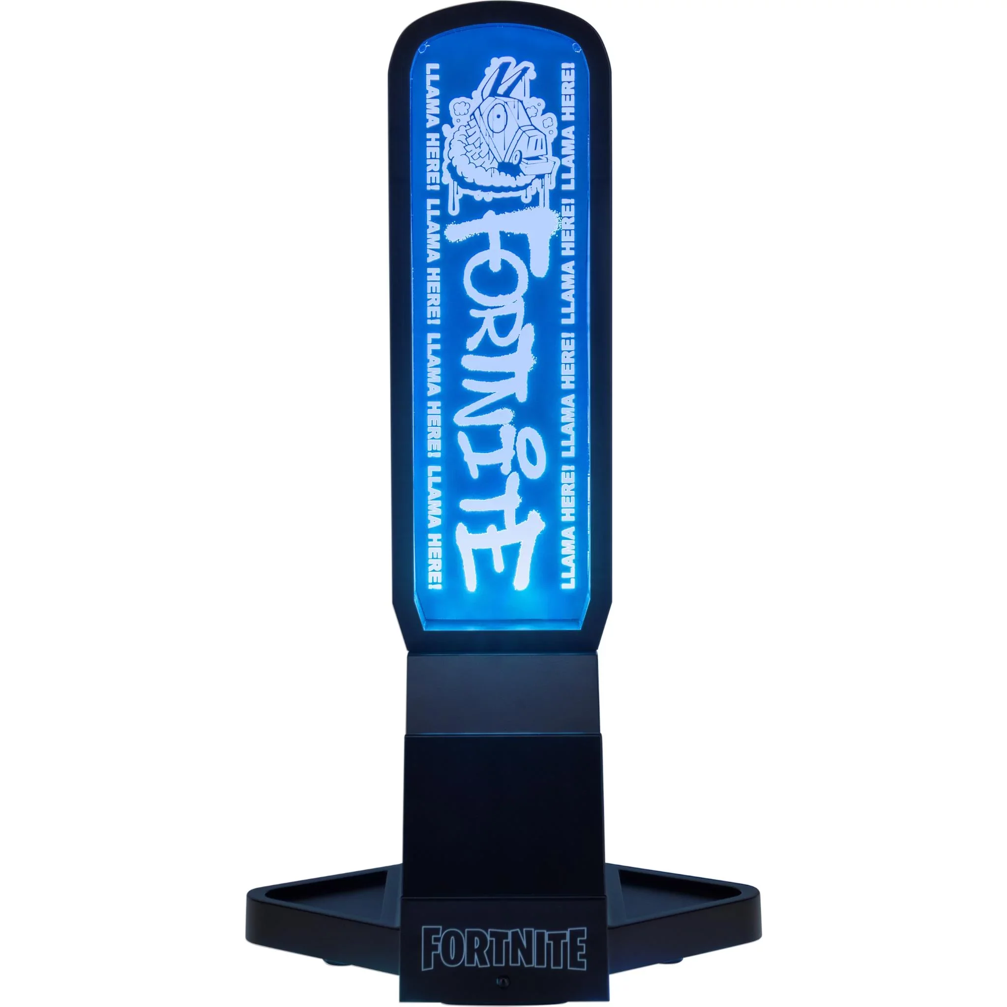 Stylowy stojak na słuchawki z motywem Fortnite, który jednocześnie pełni funkcję lampki LED i stacji ładującej. Dzięki dwóm portom USB-C umożliwia ładowanie kontrolerów, telefonów lub innych urządzeń. Oferuje kilka trybów kolorystycznych oświetlenia, możliwość regulacji jasności oraz reakcję na muzykę. Do zestawu dołączony jest pilot zdalnego sterowania dla łatwej obsługi. Idealny dodatek do biurka każdego fana Fortnite.