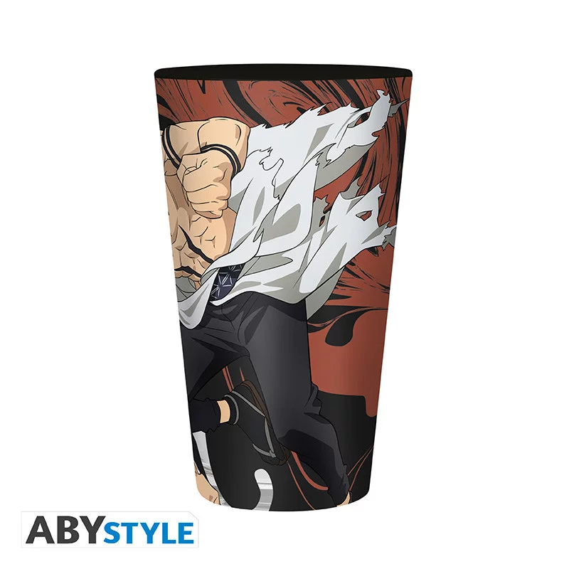 Energia wylewa się zewsząd. Ta stylowa szklanka uchwyca intensywne starcie Itadoriego i Sukuny, dwóch dusz dzielących jedno ciało. Wyrazisty, dynamiczny nadruk doda twojemu napojowi porządną dawkę energii jujutsu.