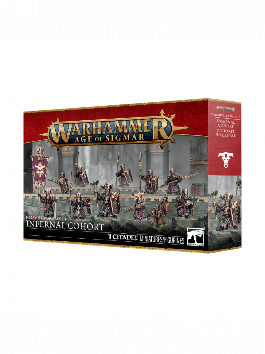 Wypuść na pole bitwy palącą furię Infernal Cohort, nieustępliwej piechoty Helsmiths of Hashut. Kowale wojny z Piekielnego Pieca maszerują w rytm żelaza i płomienia, odziani w ciężką zbroję i uzbrojeni w śmiertelne włócznie, które płoną demoniczną siłą.
