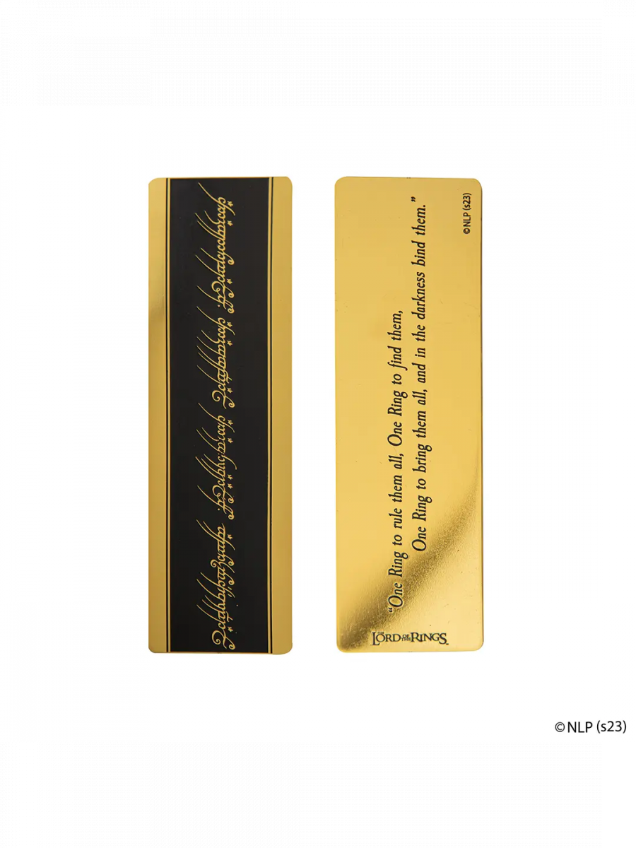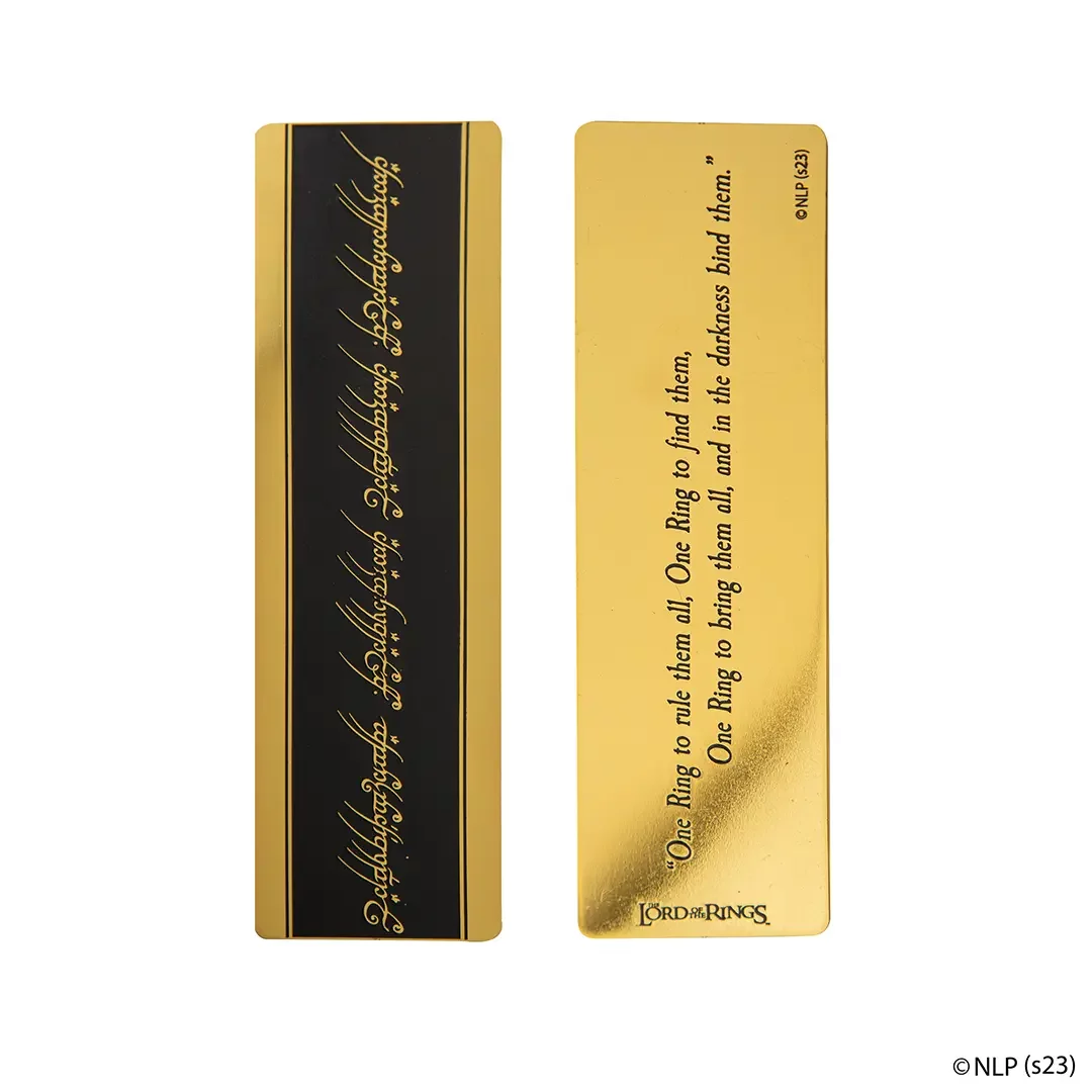 Elegancka metalowa zakładka inspirowana Władcą Pierścieni, ozdobiona kultowym napisem z Jedynego Pierścienia w czarnej mowie.