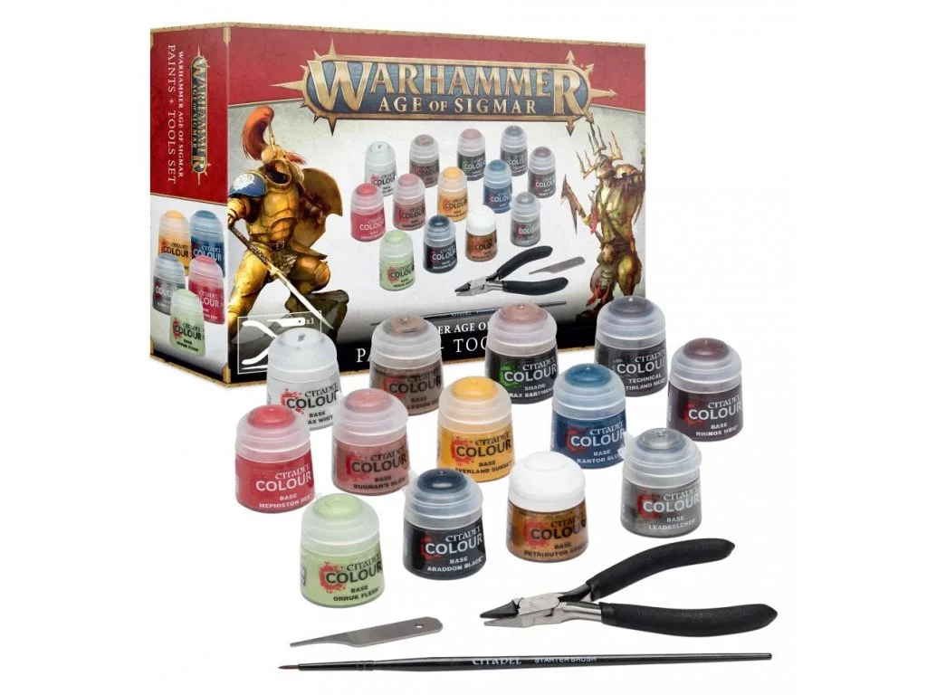 Zestaw farb Citadel Age of Sigmar Paints + Tools (13 farb, pędzel, pilnik, szczypce) 2021 (uszkodzone opakowanie)