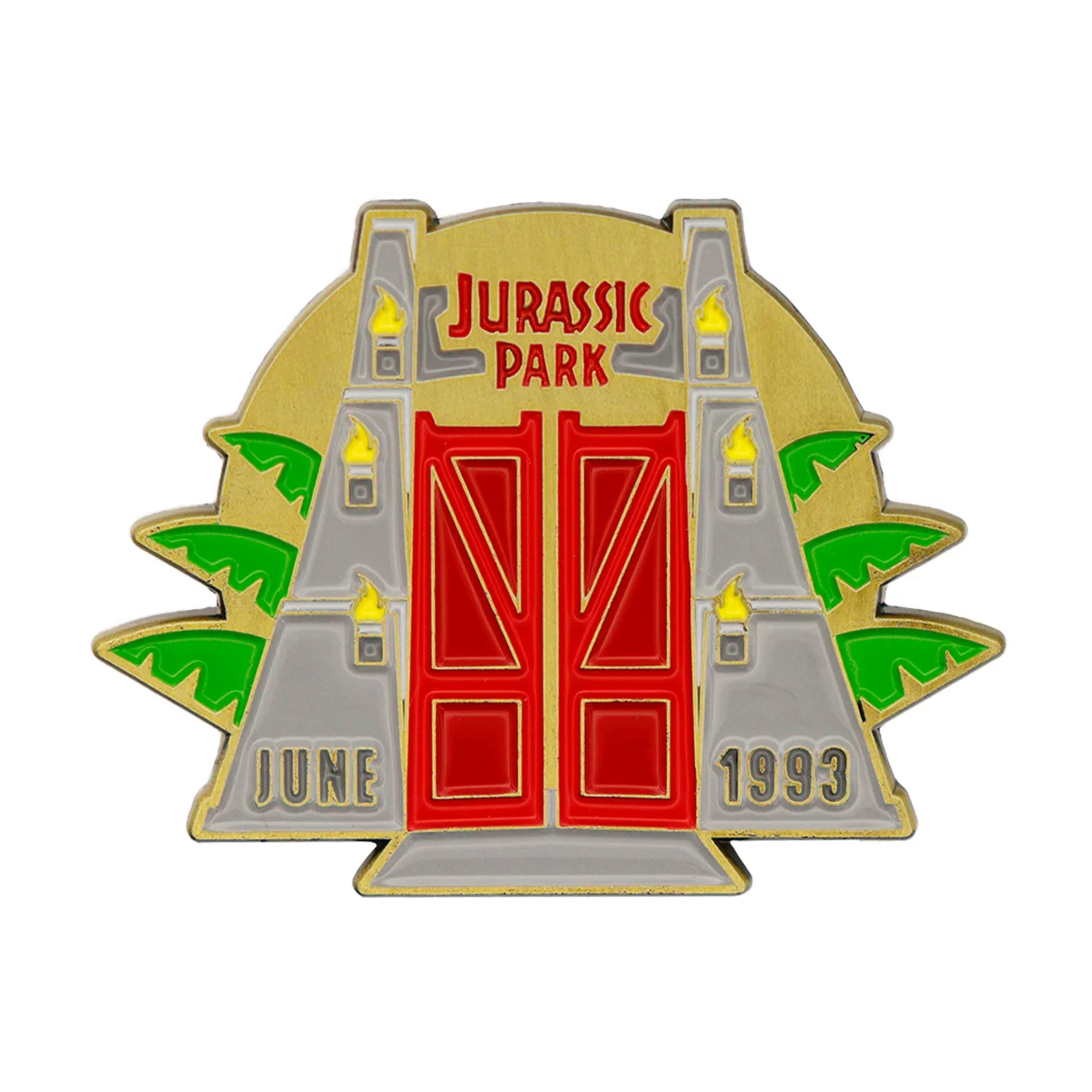Wejdź do legendarnego parku dzięki zestawowi, który zachwyci każdego fana prehistorycznych przygód. W środku znajdziesz przepiękny medalion inspirowany ikonicznym komarem w bursztynie oraz szczegółową emaliowaną przypinkę z monumentalną bramą wejściową.