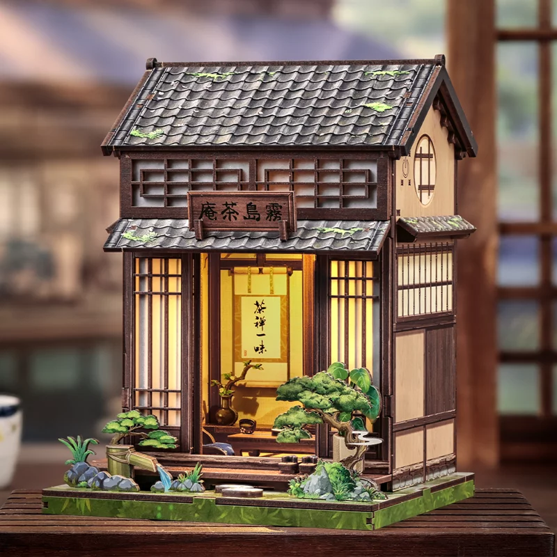 Stwórz własny kącik spokoju dzięki szczegółowemu zestawowi CuteBee – Kirishima Cha-an, który oddaje atmosferę tradycyjnej japońskiej herbaciarni. Drewniana fasada, przesuwne drzwi, bonsai przed wejściem oraz ciepłe oświetlenie wnętrza nadają modelowi autentyczny i przytulny wygląd.