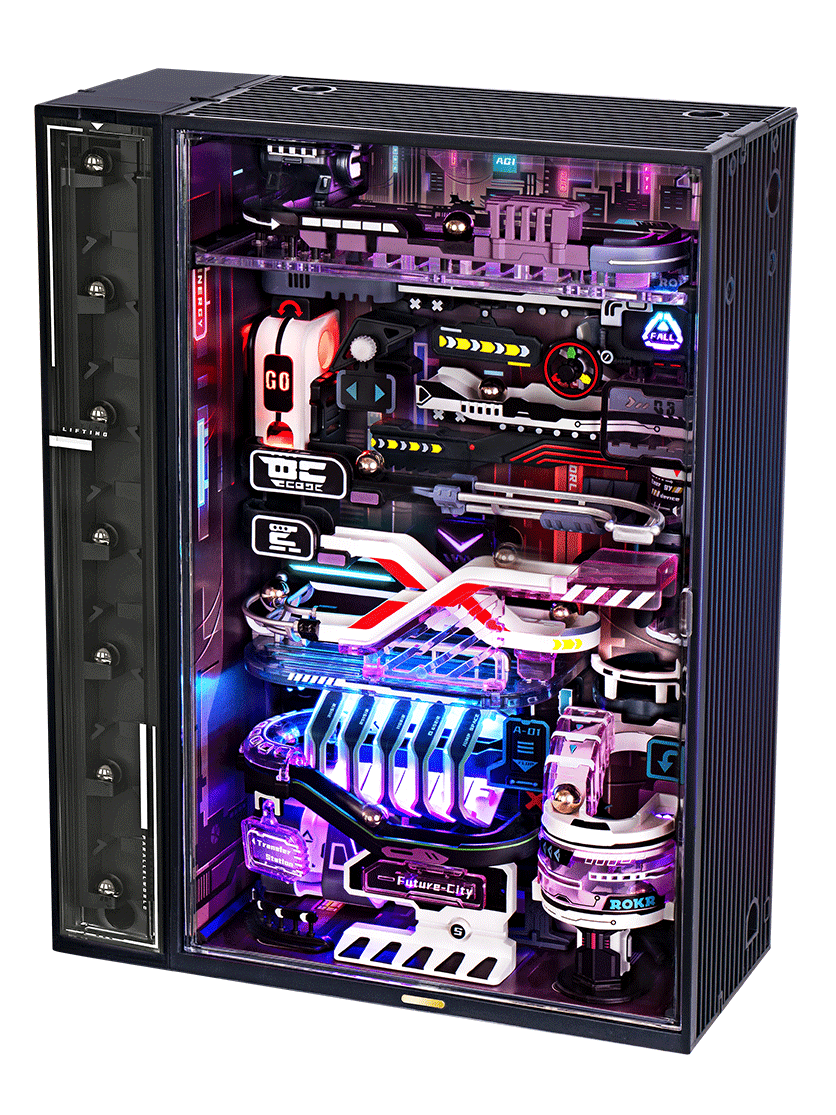 Jest to zestaw puzzli 3D w formie miniaturowego domku z kulodromem w wyrazistym stylu cyberpunkowym, o łącznej długości toru około 174 cm. Po wrzuceniu kulek do otworu przemykają one przez miasto, tocząc się swobodnie z góry na dół pod wpływem grawitacji, a następnie są transportowane z powrotem na szczyt za pomocą windy, dzięki czemu cały proces zaczyna się od nowa.Wymiary: 180 x 77 x 231 mm