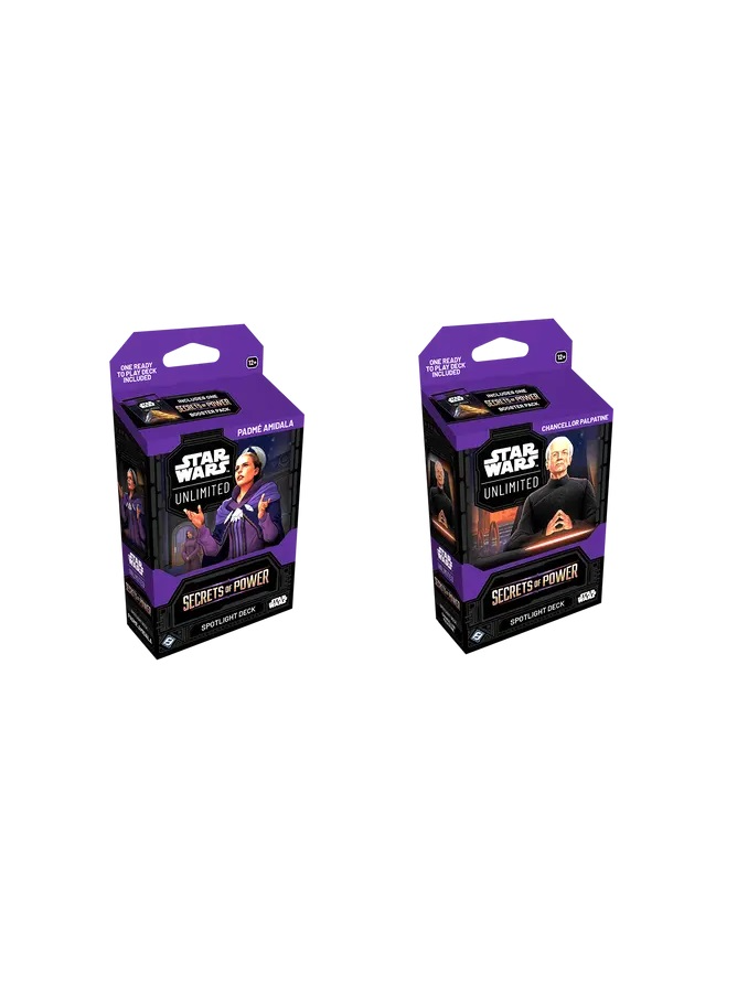 Zestaw Star Wars: Unlimited - Secrets of Power Spotlight Deck (Chancellor Palpatine) + Spotlight Deck (Padmé Amidala) zawiera: